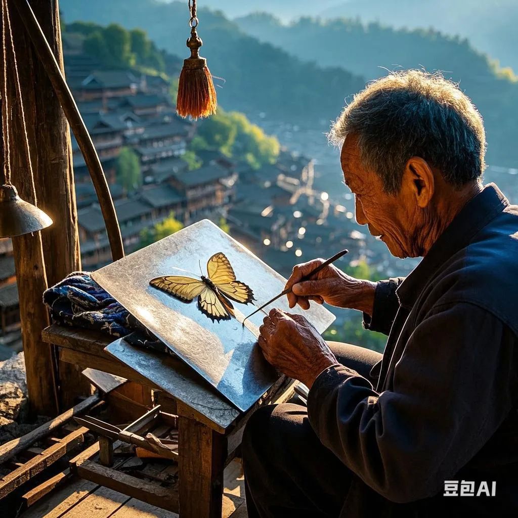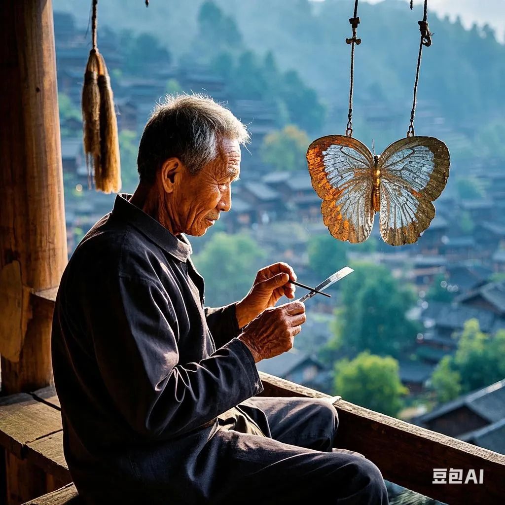 贵州凯里千户苗寨的清晨总是笼罩着一层薄雾,龙九斤坐在自家吊脚楼前,手中的錾刀在银片上敲出细碎的叮当声响。七十八岁的老银匠眯着眼,把银片举到熹微的晨光里打量,上面细如发丝的蝴蝶翅膀纹路闪着冷光。