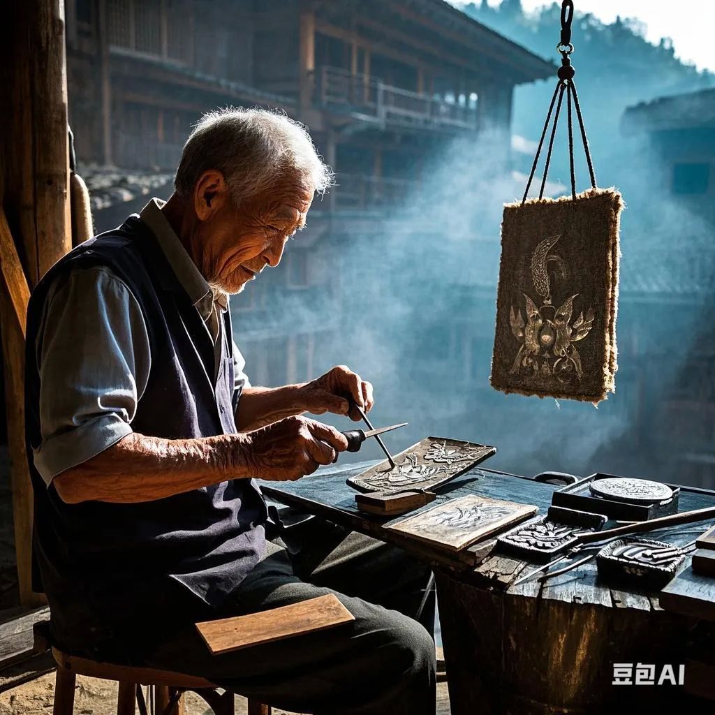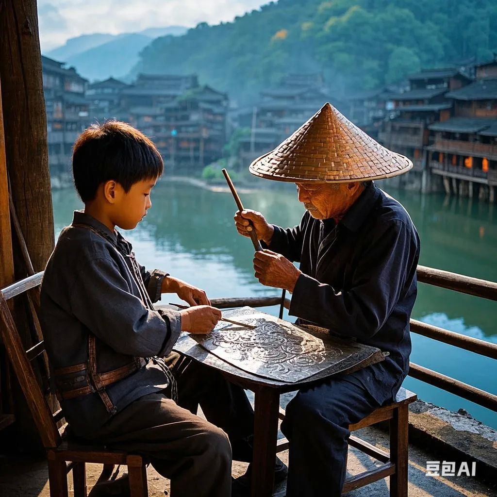 深夜,小满帮忙拉风箱时,银片在火光中显现出奇异的纹路。那些原本隐藏的图腾在高温下伸展开来,竟然是一幅完整的苗族迁徙图:黄河边的枫香树、洞庭湖的龙舟、雷公山的蝴蝶泉……