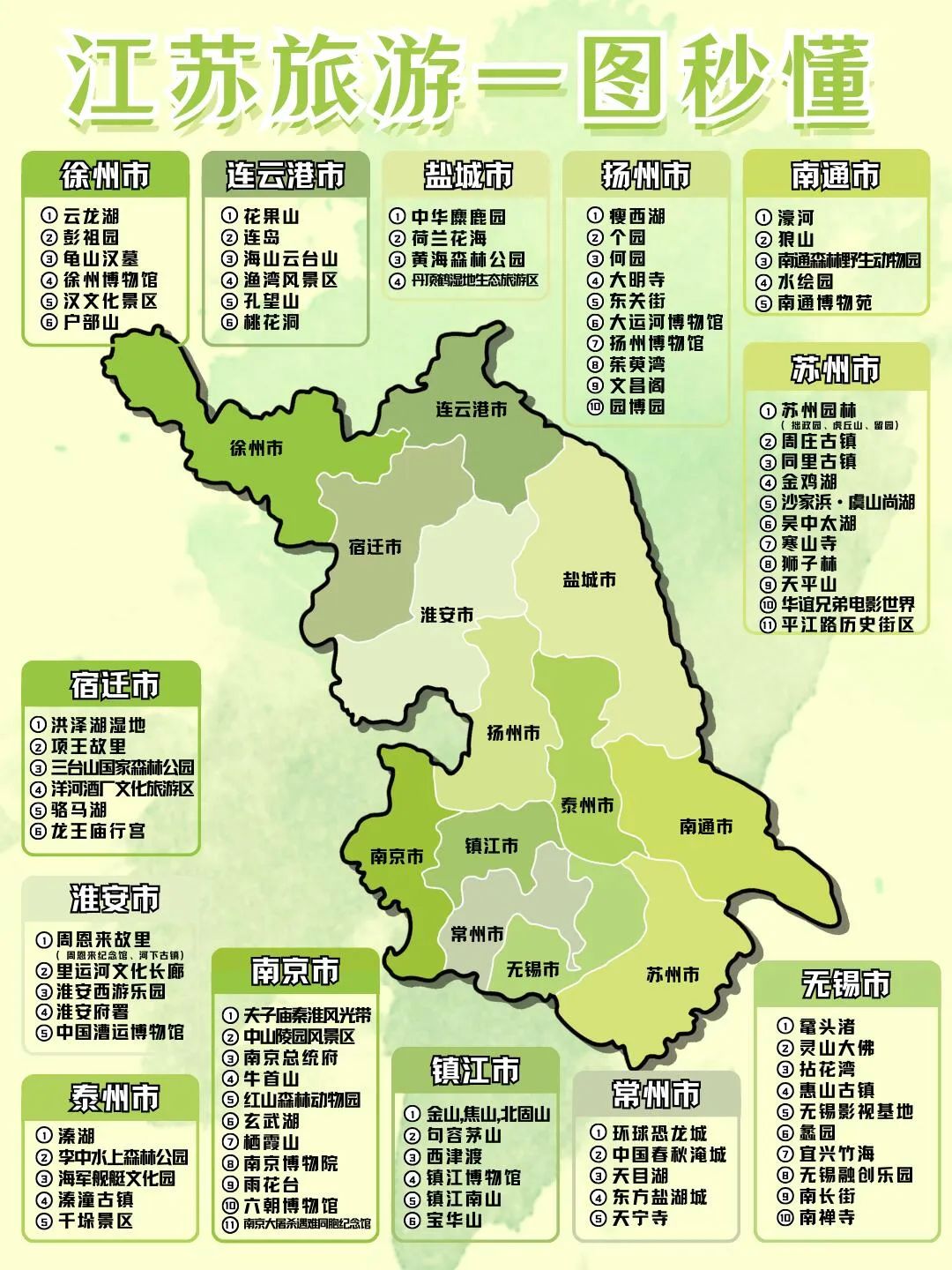 - 江苏旅游:人文与自然景观相得益彰,南京、苏州等城市有丰富的历史古迹和园林建筑,同时无锡太湖、连云港海滨等自然景观也独具魅力。