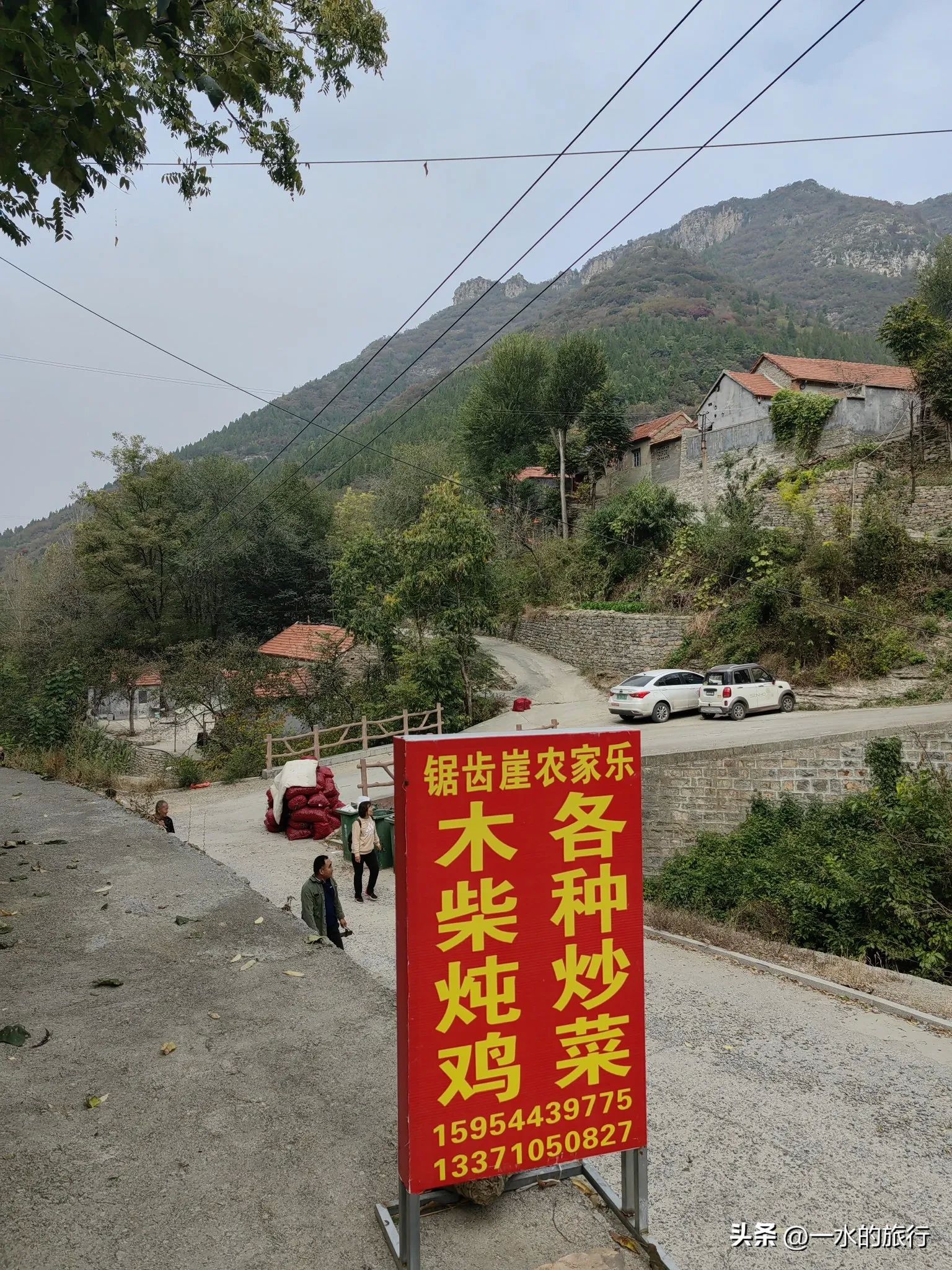 下山口处路南,有一家锯齿崖农家乐,老板娘很热情,木柴土炉炖鸡很不错,每只158元,农家莱也不贵,点了6个,我们9人花了320元,很实惠,面食大饼很好吃。