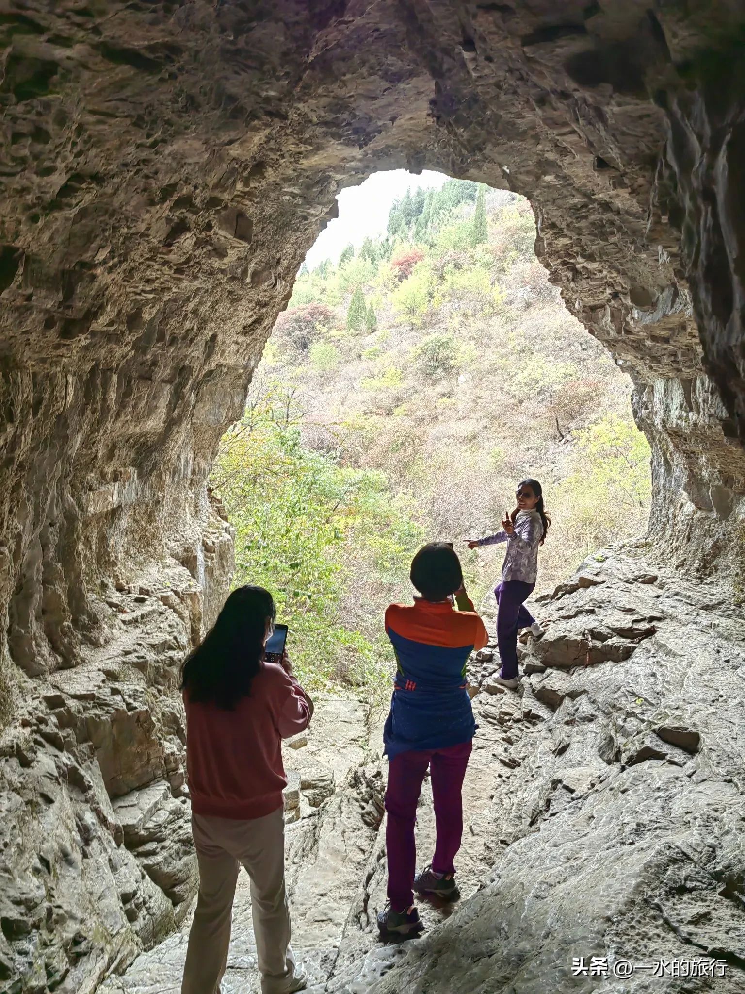 从村内驾车沿水泥路向村东南,5分钟后见一水库,车停水库边,沿左侧山谷进入,不到百米,可见一高大洞口悬于峭壁之上。
