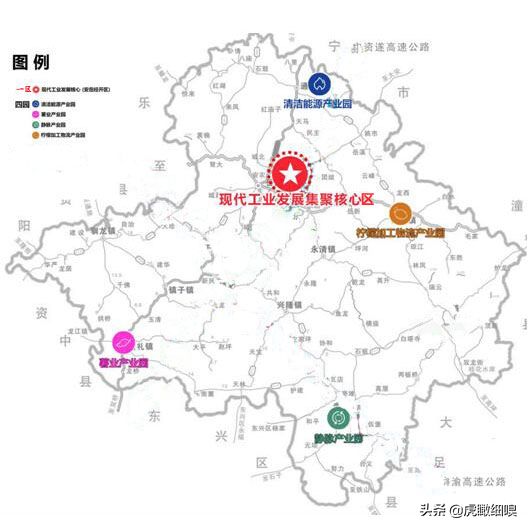 工业:一区四园。“一区”,即以四川安岳经开区为现代工业集聚核心;“四园”,即通贤清洁能源产业园、安岳红薯加工产业示范园、李家低碳生态产业园和龙台柠檬加工物流产业园四大特色产业园区。