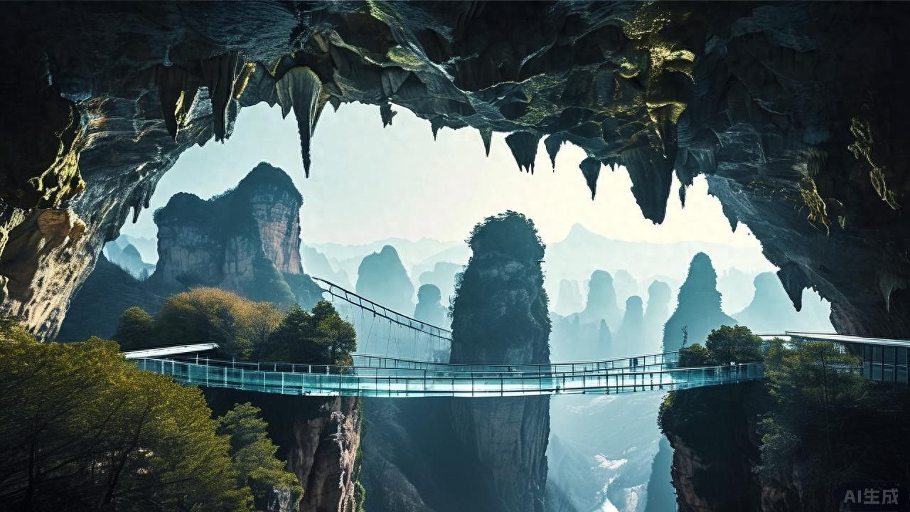 张家界以“三千奇峰拔地而起”的砂岩峰林地貌震撼世界,其石英砂岩经亿万年地质演变,形成如刀削斧劈的绝壁与云雾缭绕的峰林,堪称“仙山圣境”的代名词。武陵源的喀斯特地貌中,黄龙洞以立体洞穴网络与地下暗河系统闻名,1库2河3潭4瀑的结构如“地底迷宫”,溶洞景观独步天下;大峡谷的玻璃桥则以惊险姿态悬浮于深渊之上,将人类工程与自然奇观完美融合。这些景观以“视觉冲击力”为核心,犹如大地艺术展,每一处褶皱都写满自然密码。