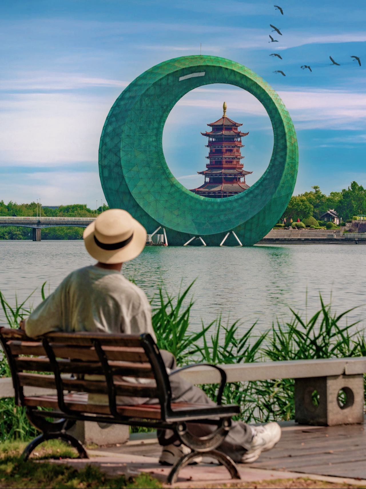 圆月广场: 古建和圆月造型古今同框非常震撼