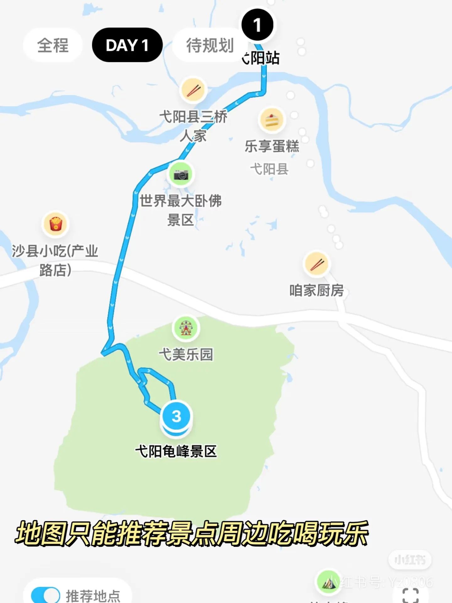 地图会根据当前位置和行程地点推荐周边的景点、美食!