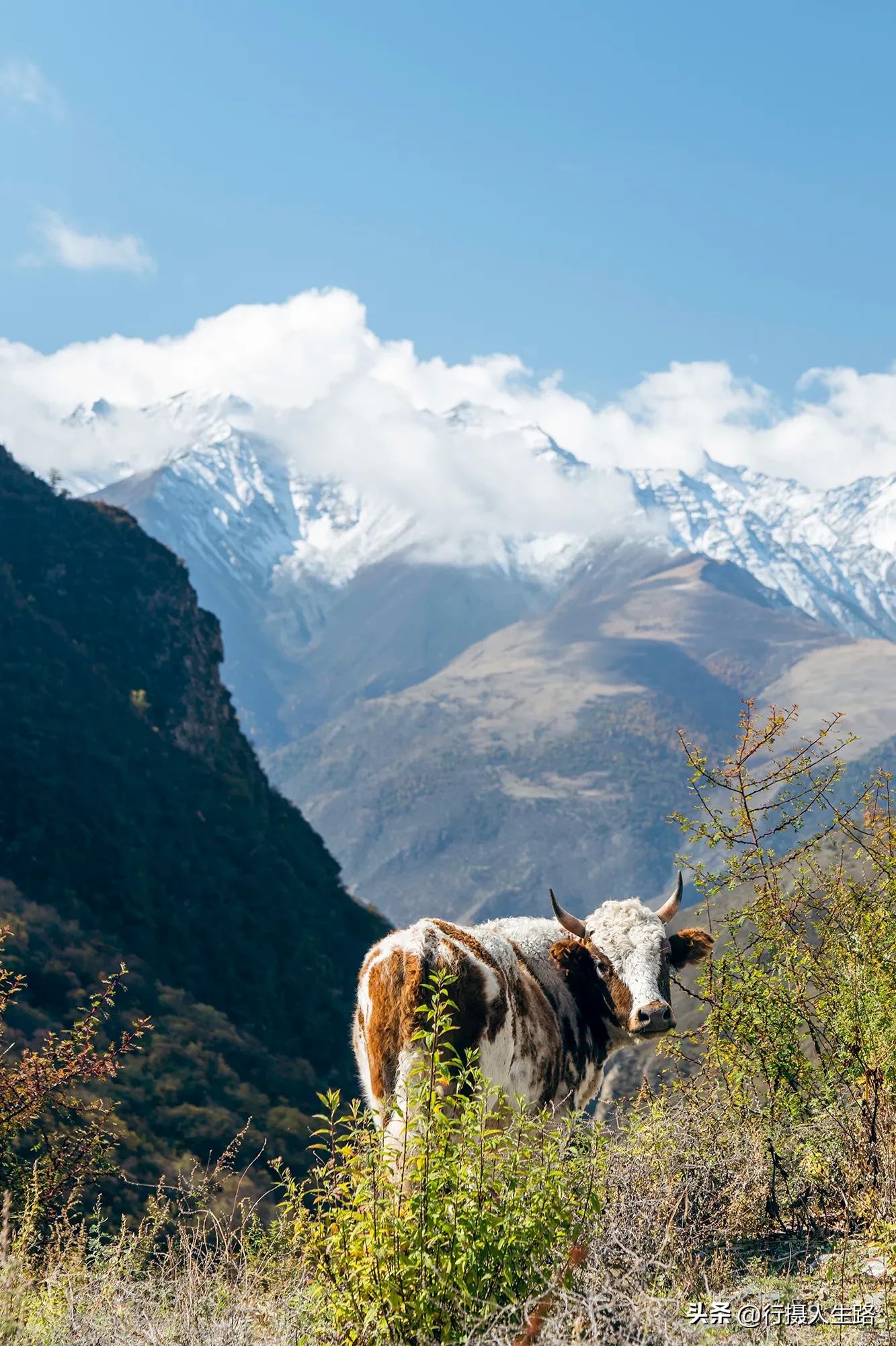从列麦乡出发时,还是眼秋色,这个藏在群山之中的小镇,层林尽染,小河蜿蜒,金色的阳光洒落,“采菊东篱下,悠然见南山”的闲适自上心头?
