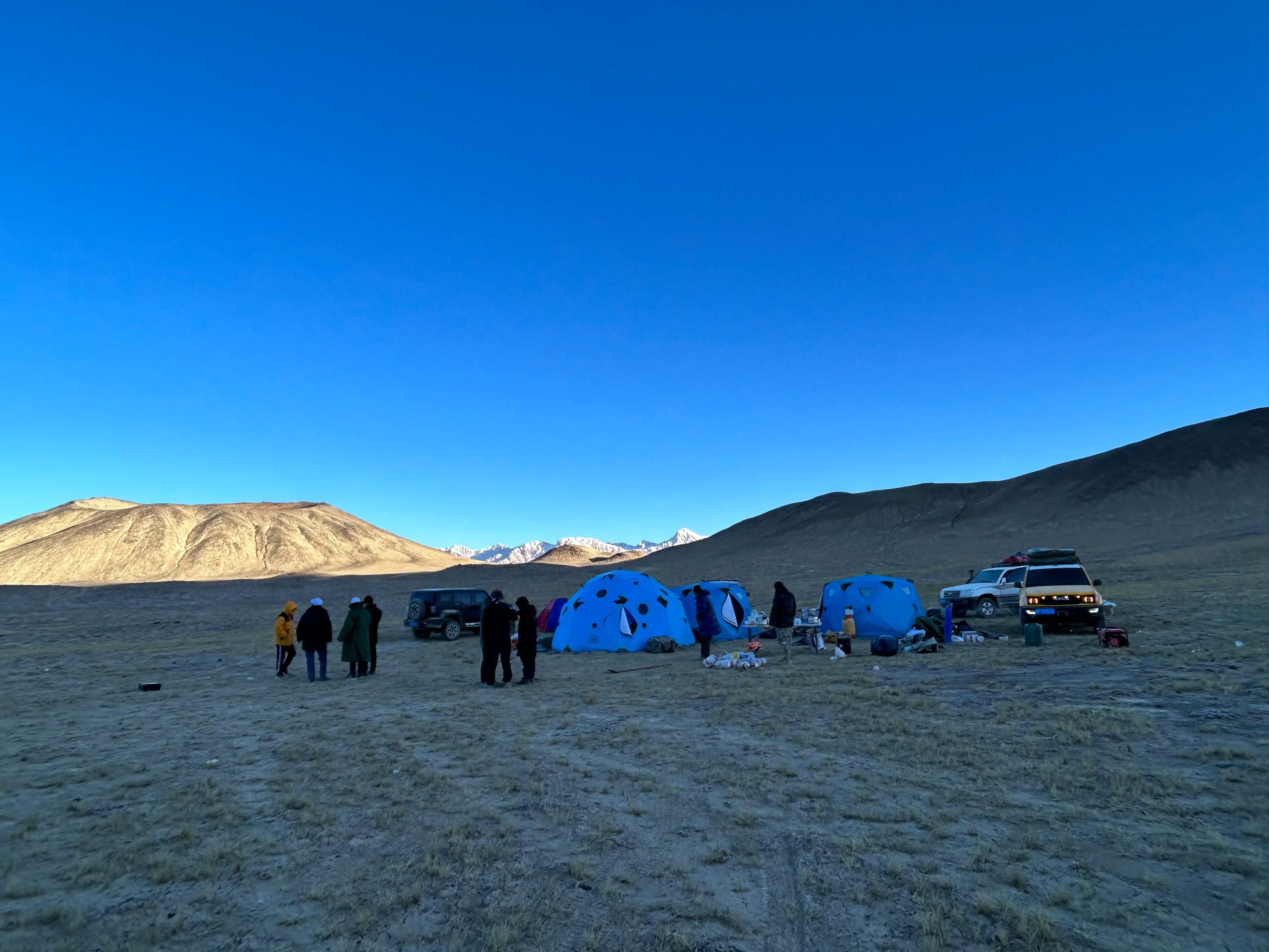 10.12日晚我跟地质大学的几位老师外出在克里雅古道的乌鲁克盆地野外作业,回到阿什库勒火山营地时已经是晚上十点,我看到营地旁多了几个小帐篷,第一反应是自驾游客过来蹭饭吃,有点不高兴,毕竟我们团队物资也有限