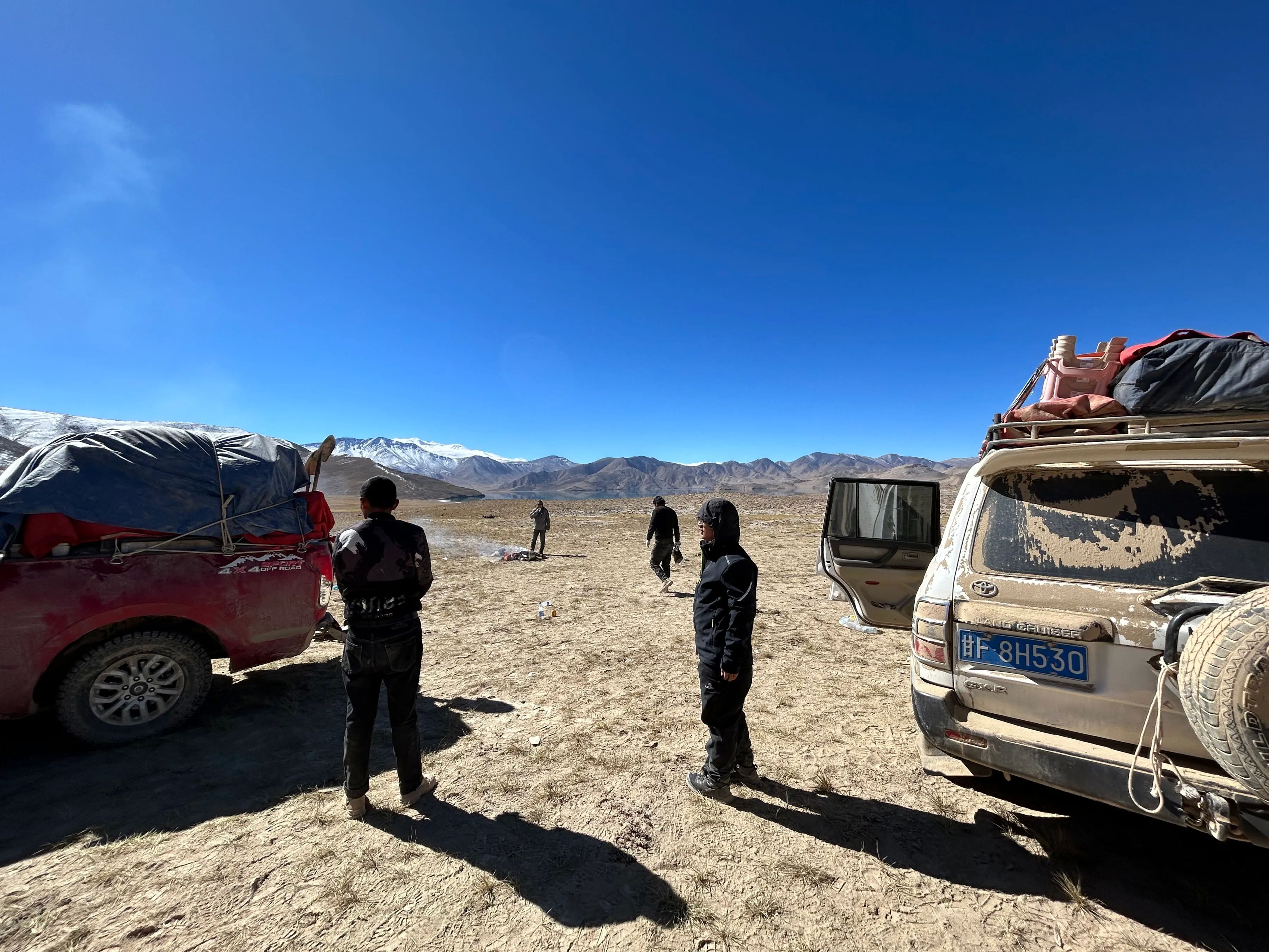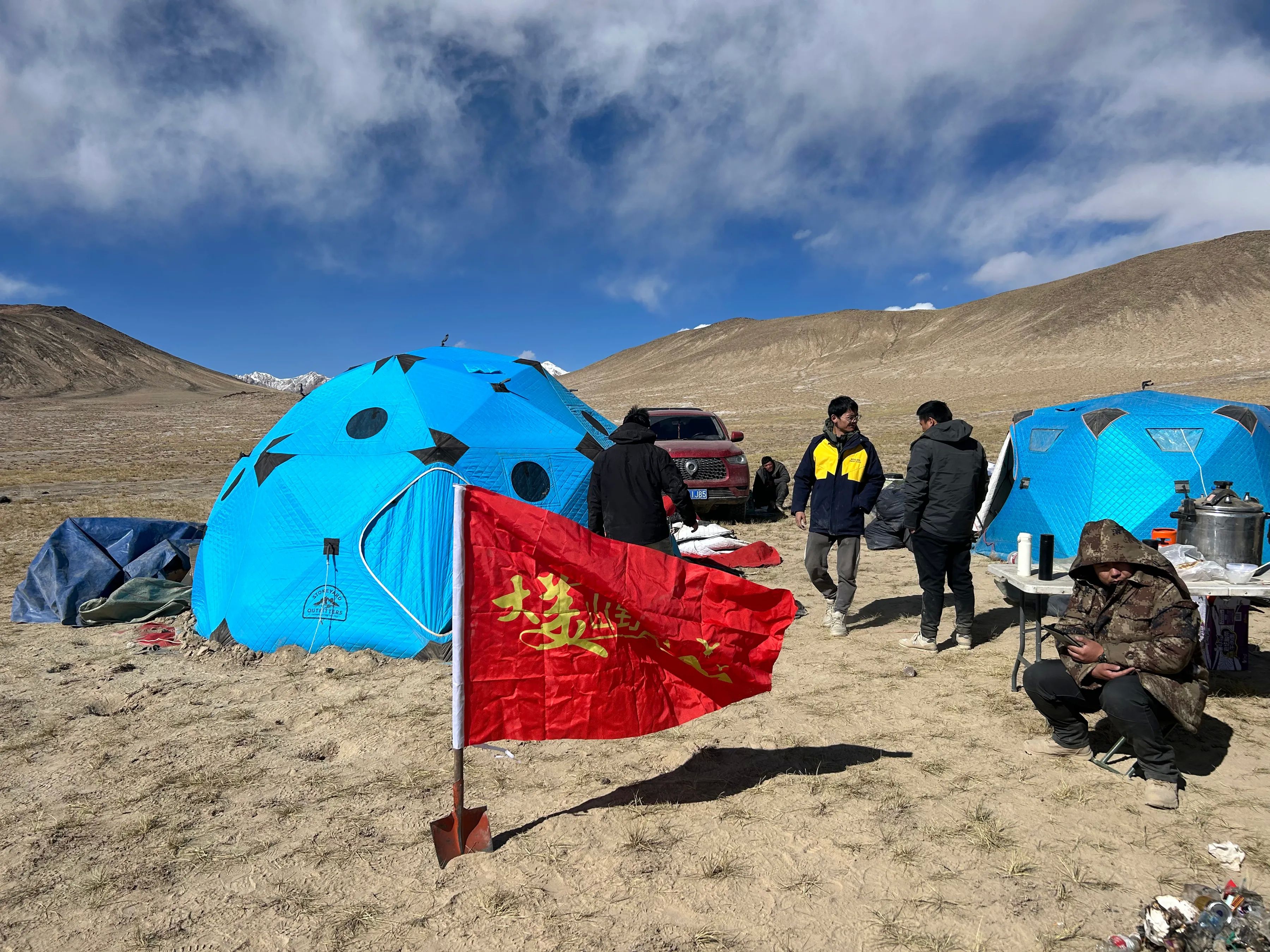 原来他们是两辆车六个人进来考察旅游资源的,结果从普鲁村进来没多久,车辆坏了一辆,为了完成任务他们六个人挤一辆车硬扛进来的,天快黑的时候,看到了我们在湖边的营地,过来和我们会合,我们留守营地同事不认识他们,只给了他们三个简易帐篷和一个防潮垫,他们六个人也不想给我们添麻烦,没有跟我们留守同事表明身份,也没跟我们要任何物资,说天亮就走,这次带队的是文磊书记,因为高反正在他们唯一的一辆车里休息