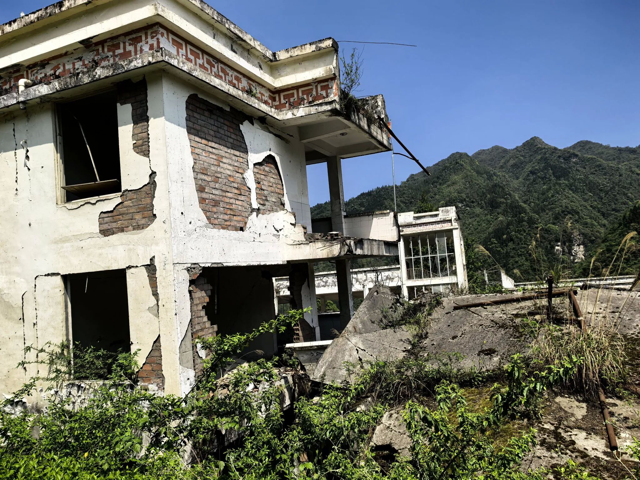 映秀,这片曾经安宁的土地,如今承载着无数沉重的回忆。地震的灾难如同一只无形的巨手,将这里的一切撕裂、摧毁。当我漫步在残破的街道上,断壁残垣与瓦砾仿佛在诉说着那个惊心动魄的时刻。倒塌的楼房,扭曲的钢筋,破碎的玻璃,这些景象让人不禁想起灾难降临的瞬间,无数人在惊恐与绝望中挣扎求生。 在这片废墟中,我感受到了生命的脆弱与坚韧交织的复杂情感。