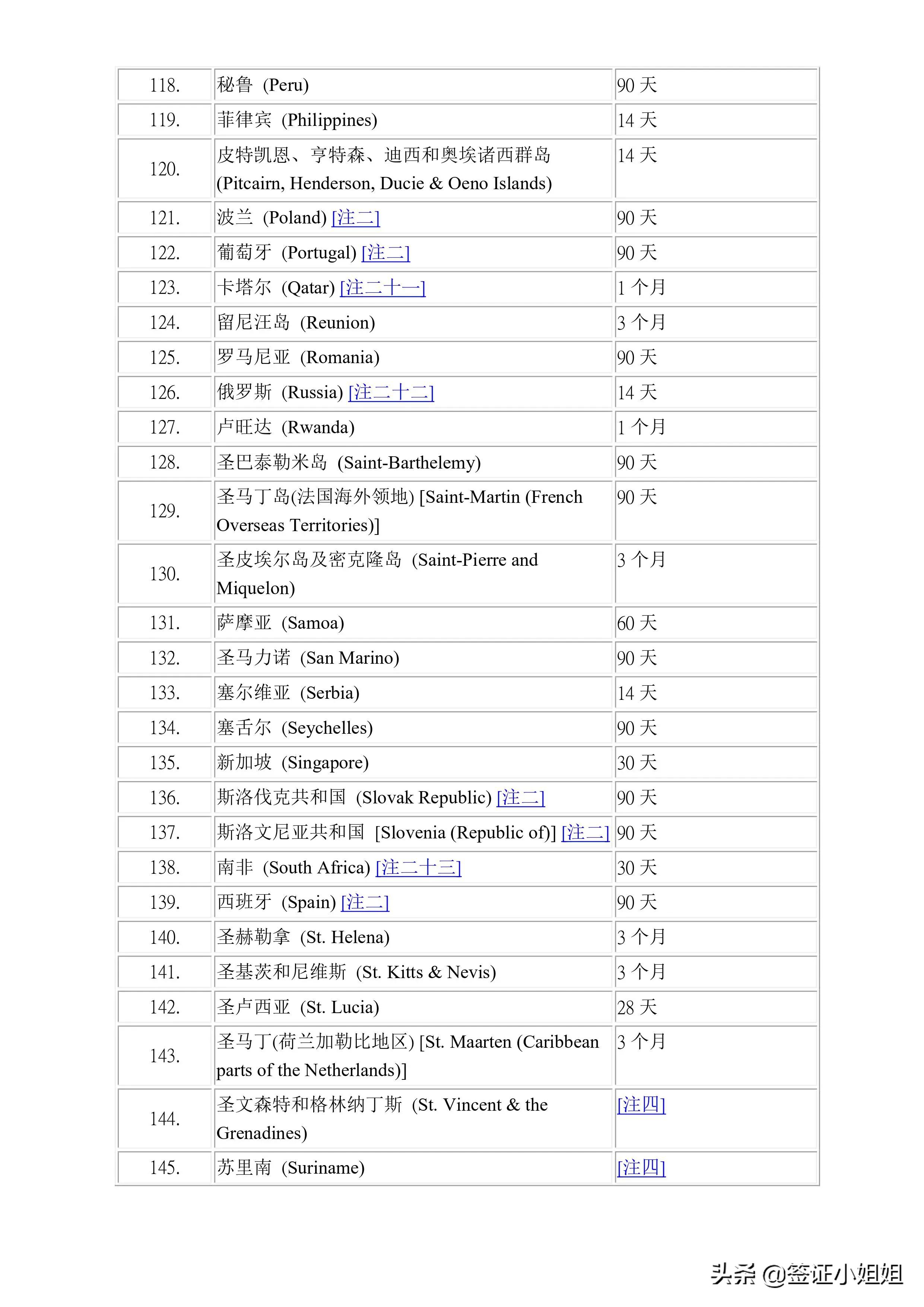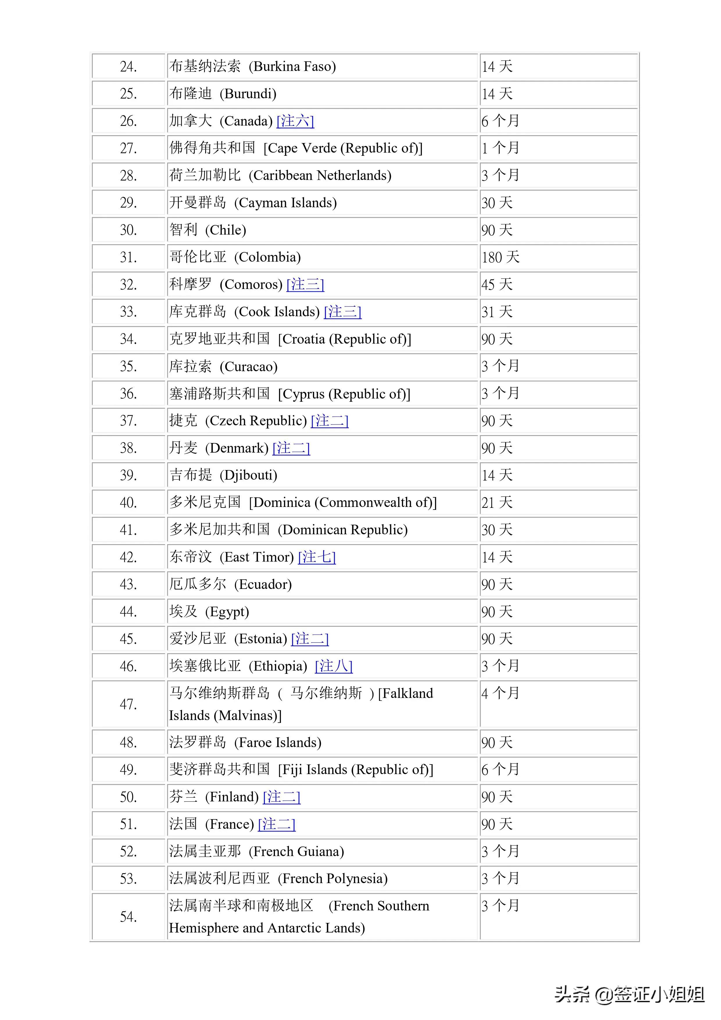 美洲(24个):加拿大,墨西哥,哥伦比亚,智利,巴西,秘鲁,阿根廷,巴拿马,巴哈马,乌拉圭,委内瑞拉,牙买加,伯利兹,玻利维亚,多米尼克,多米尼加,厄瓜多尔,格林纳达,圭亚那,圣卢西亚,安圭拉,安提瓜和巴布达,苏里南,特立尼达和多巴哥。