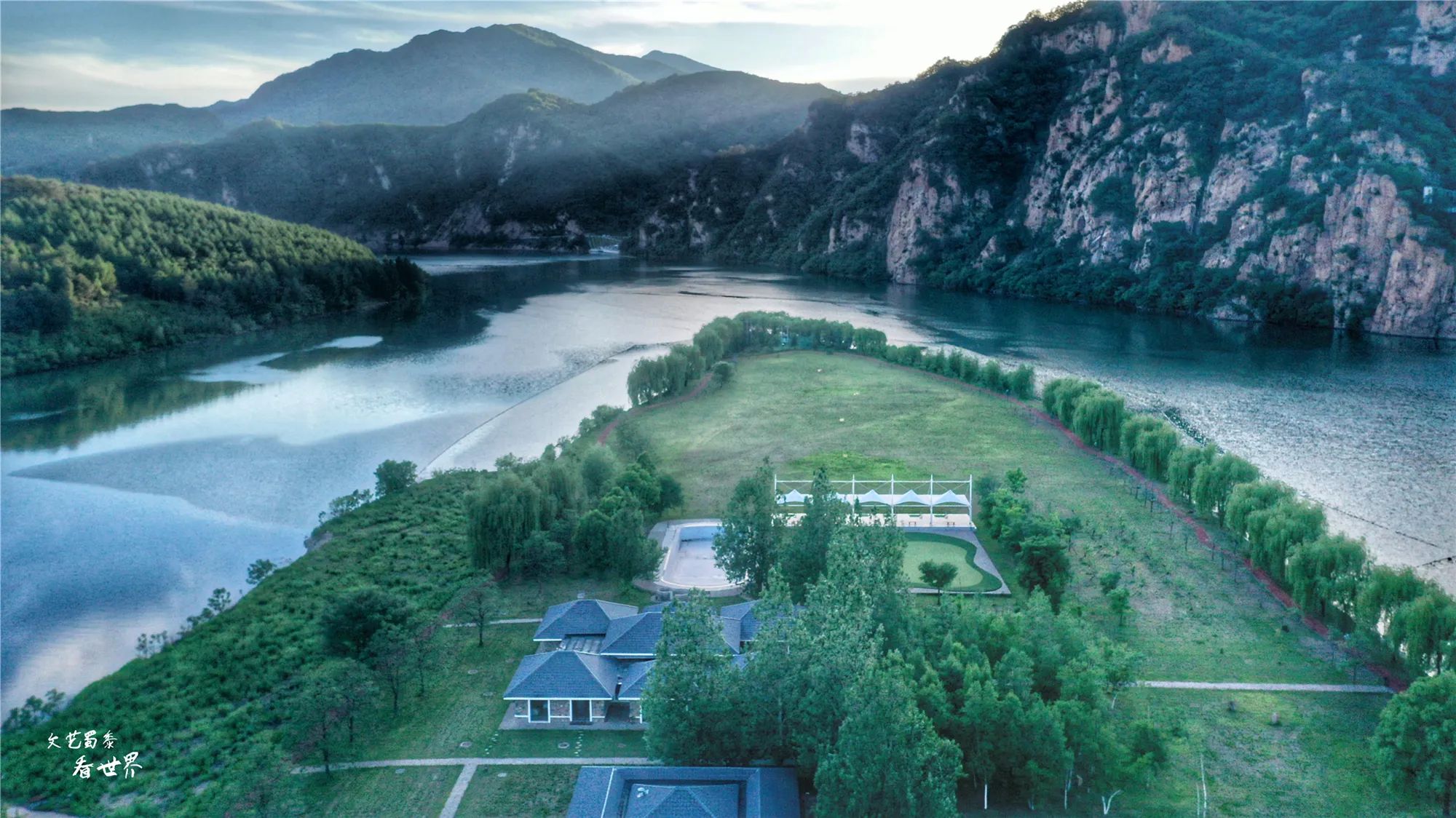 于是,我迫不及待地在虎谷峡的玻璃平台上操作无人机飞至小岛上空,航拍了小岛上的那些建筑,顿时心生喜悦,那些建筑想必是酒店、餐厅和公共设施,它们都极具特色,时尚大气、气质不凡,以我的经验来判断,这个小岛准是极具品质的度假胜地。