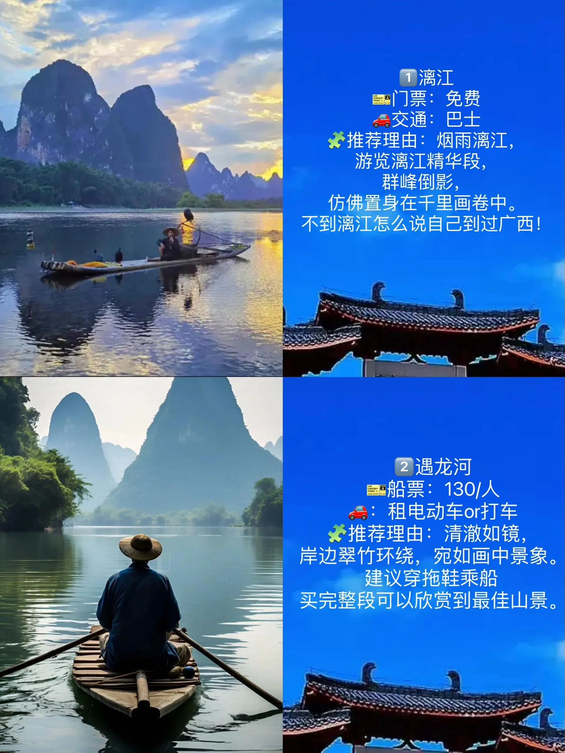 漓江,这里的山水美到像从水墨画里走出来一样。规划路线时,围绕漓江周边景点游玩,处处都是惊喜。