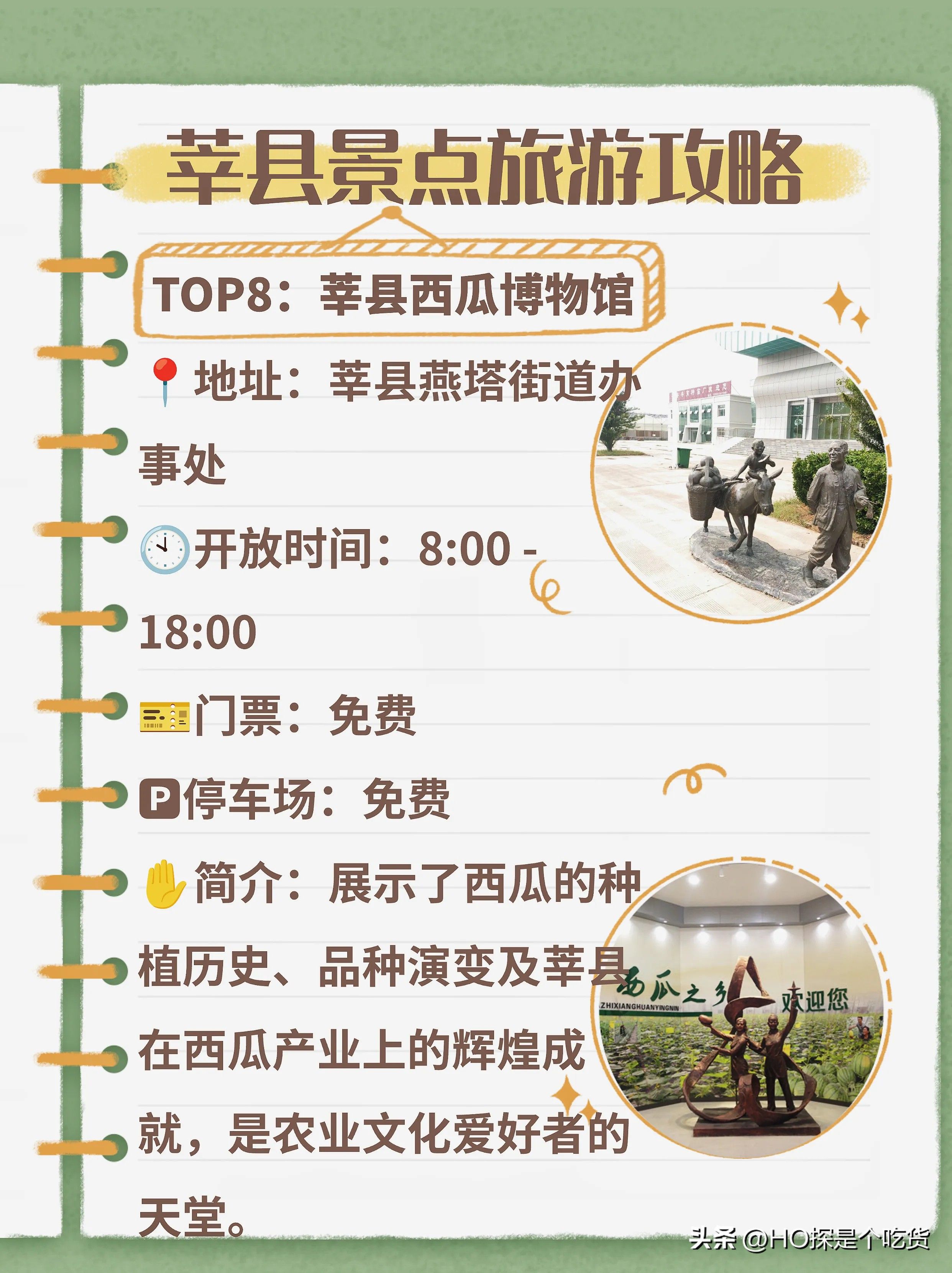简介:展示了西瓜的种植历史、品种演变及莘县在西瓜产业上的辉煌成就,是农业文化爱好者的天堂#山东郓城打卡# #郓城新景点# #郓城打卡点# #莘县最# #山东聊城一日游# #带你看看单县# #山东单县景区# #菏泽旅游搭子# #冠县推荐# #热门郓城#