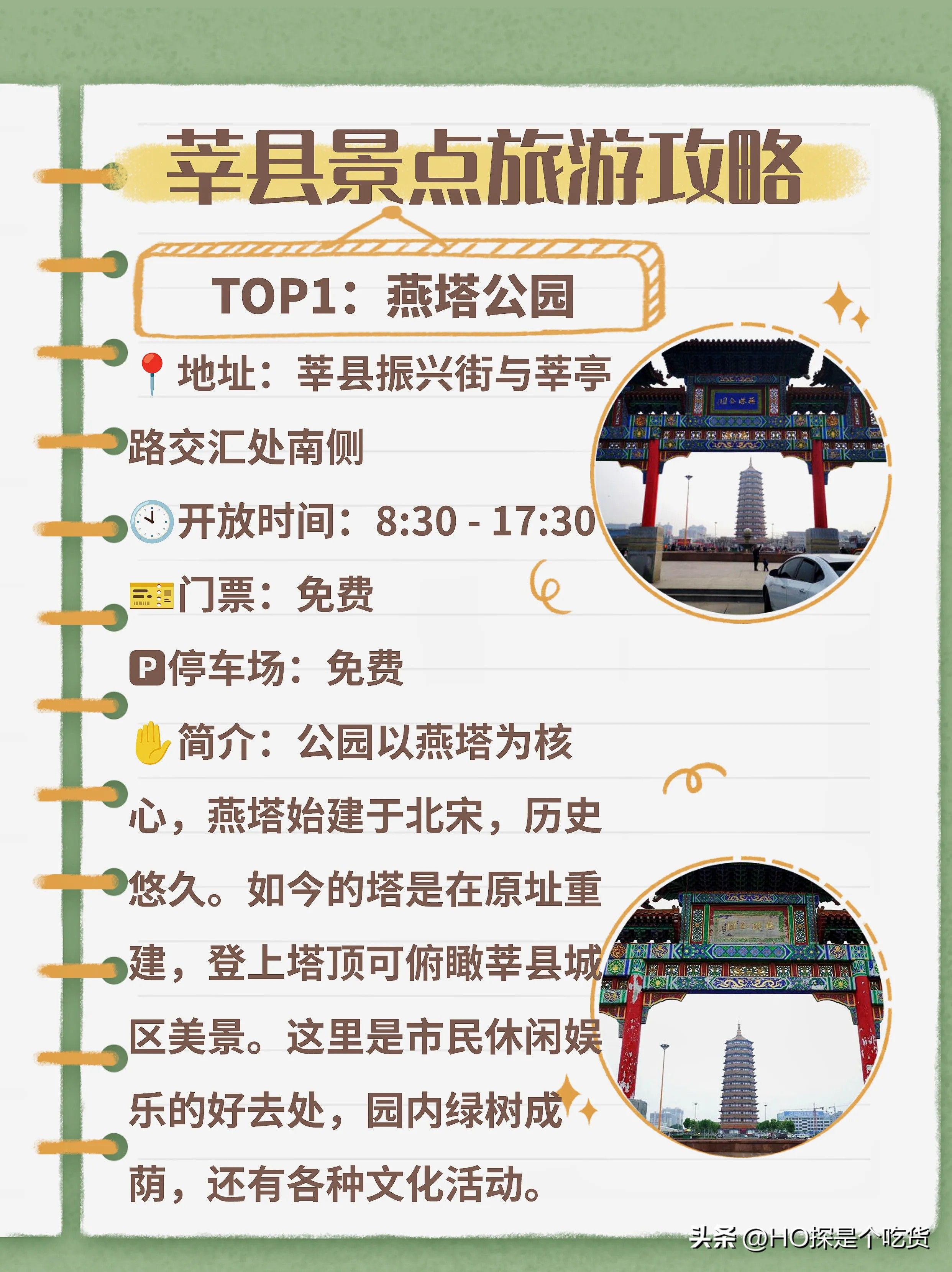 简介:公园以燕塔为核心,燕塔始建于北宋,历史悠久。如今的塔是在原址重建,登上塔顶可俯瞰莘县城区美景