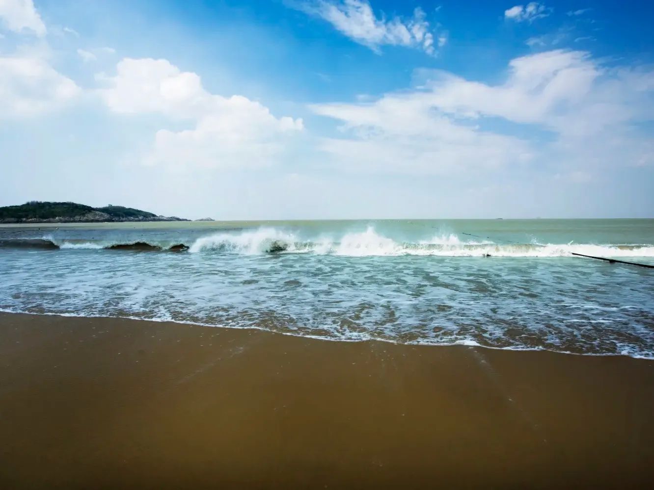 晨光初透,东沙的浪花正将夜色揉碎成银箔。五月的风裹挟着咸涩的潮气,掠过朱家尖岛绵延的沙脊,在黛色山峦与翡翠色海水间织就轻纱。踩着退潮时分湿润的沙滩前行,鞋底细沙簌簌坠落,恰似时光从指缝间流泻的触感。