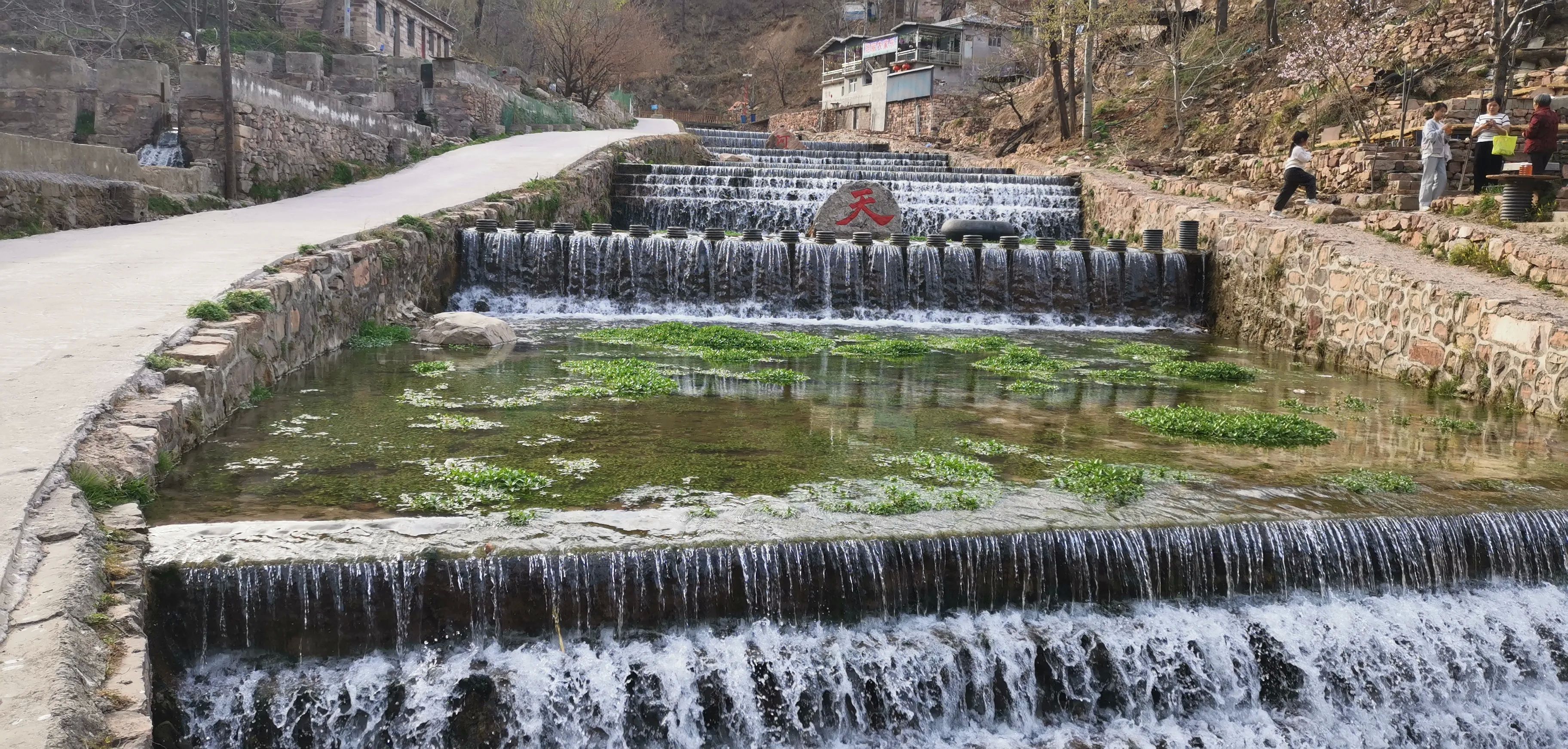 4.导航邢台白岸乡南洺水村。不愧为网红水乡,一路梯岸式的水流川流不息,水质清澈,至终点瑶池,可见水流是从上游河道流下,来回约一个多小时,是游山玩水的最佳去处。