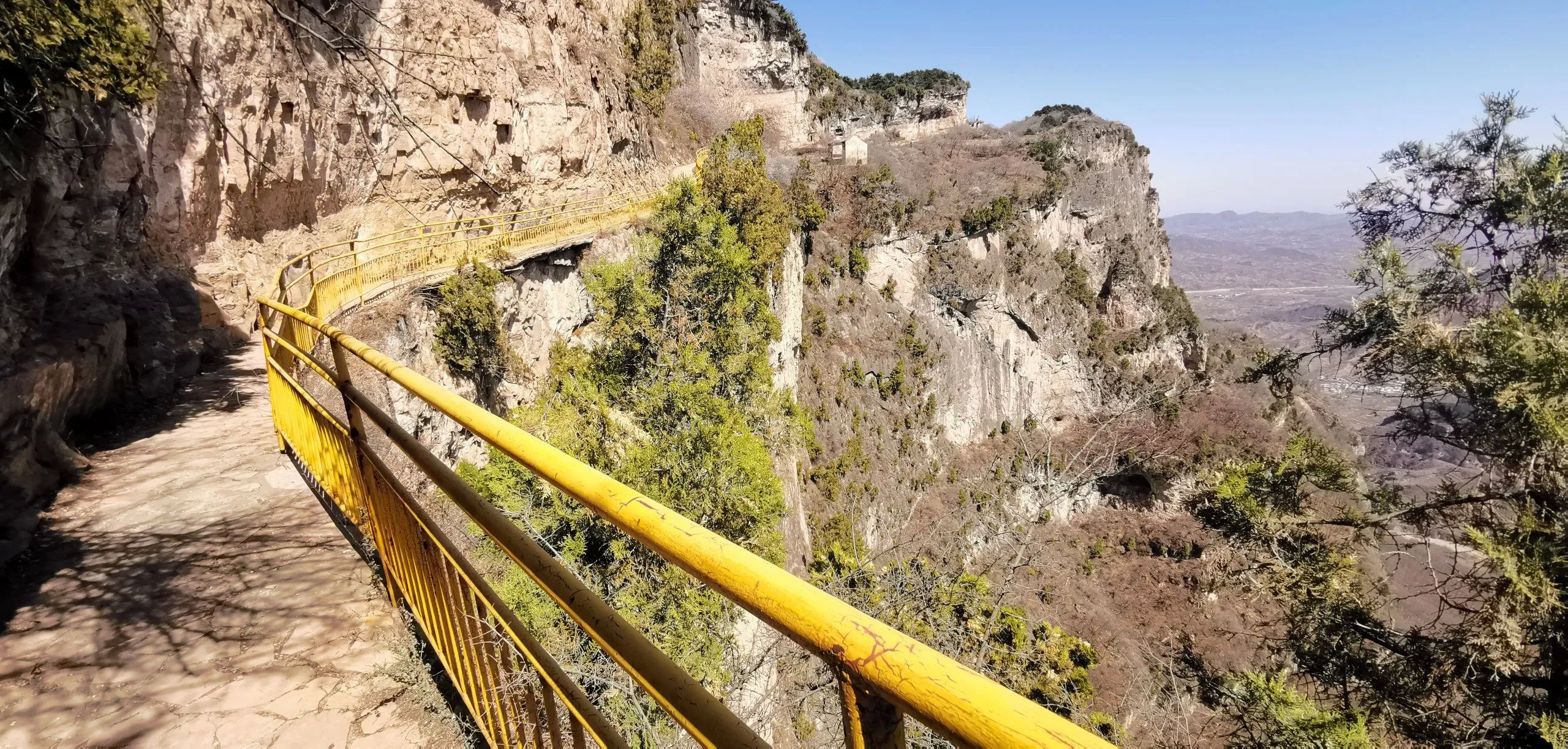 2.导航太行龙口景区,或和顺县百备村。景区早已停业,虽然大门封闭,但两侧均可进入。由于多年失修,还需注意安全第一。走至龙口长城门,在河北邢台这边相对低矮的山势衬托下,你会被山西这侧万丈崖壁所震撼。走在姑崖天险栈道上,上面是怪石嶙峋、崖柏丛生,下面是万丈深渊、山花烂漫,不由得沉醉其中。至终点是观景台,海拔1350米以上,一览众山小让人不由得心胸开阔,气势如虹。