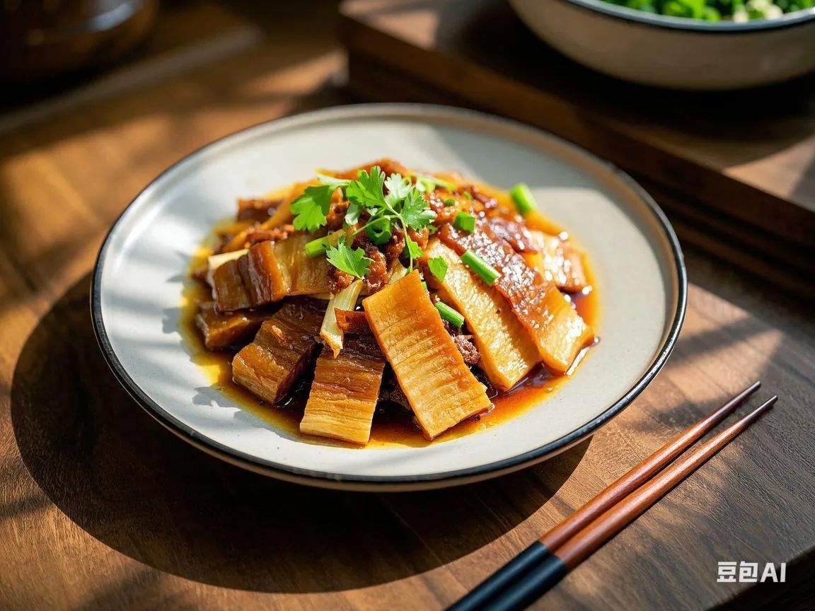 笋干烧肉:春笋晒干与五花肉炖煮,推荐“得月楼”。
