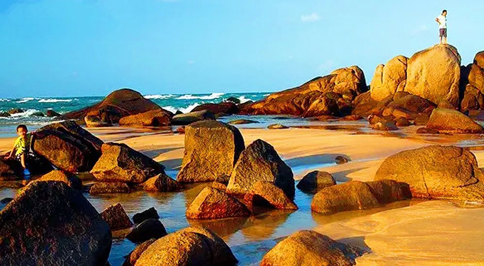 一进公园,大片形态各异的巨石沿海岸罗列,是岁月与海浪精心雕琢的杰作。有些石头圆润似卵,有些则尖锐嶙峋,攀到高处,无垠海景尽收眼底,蓝得纯粹的天、波光粼粼的海、绵软白沙,组合成绝美画面。海边还有天然形成的小水洼,藏着小鱼小蟹,童趣满满。