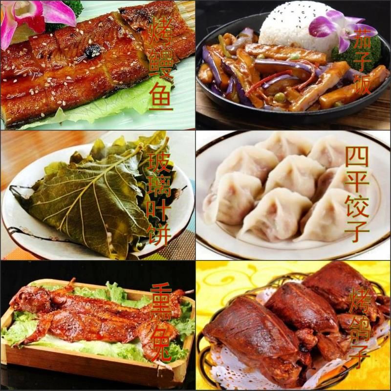四平主要特色美食:吊炉羊排、朝鲜族烤牛肉、护心肉、烧猪心、煎牛肉、伊通蕨菜、烤鳗鱼、熏兔肉、烤鸽子、茄子饭、四平饺子…