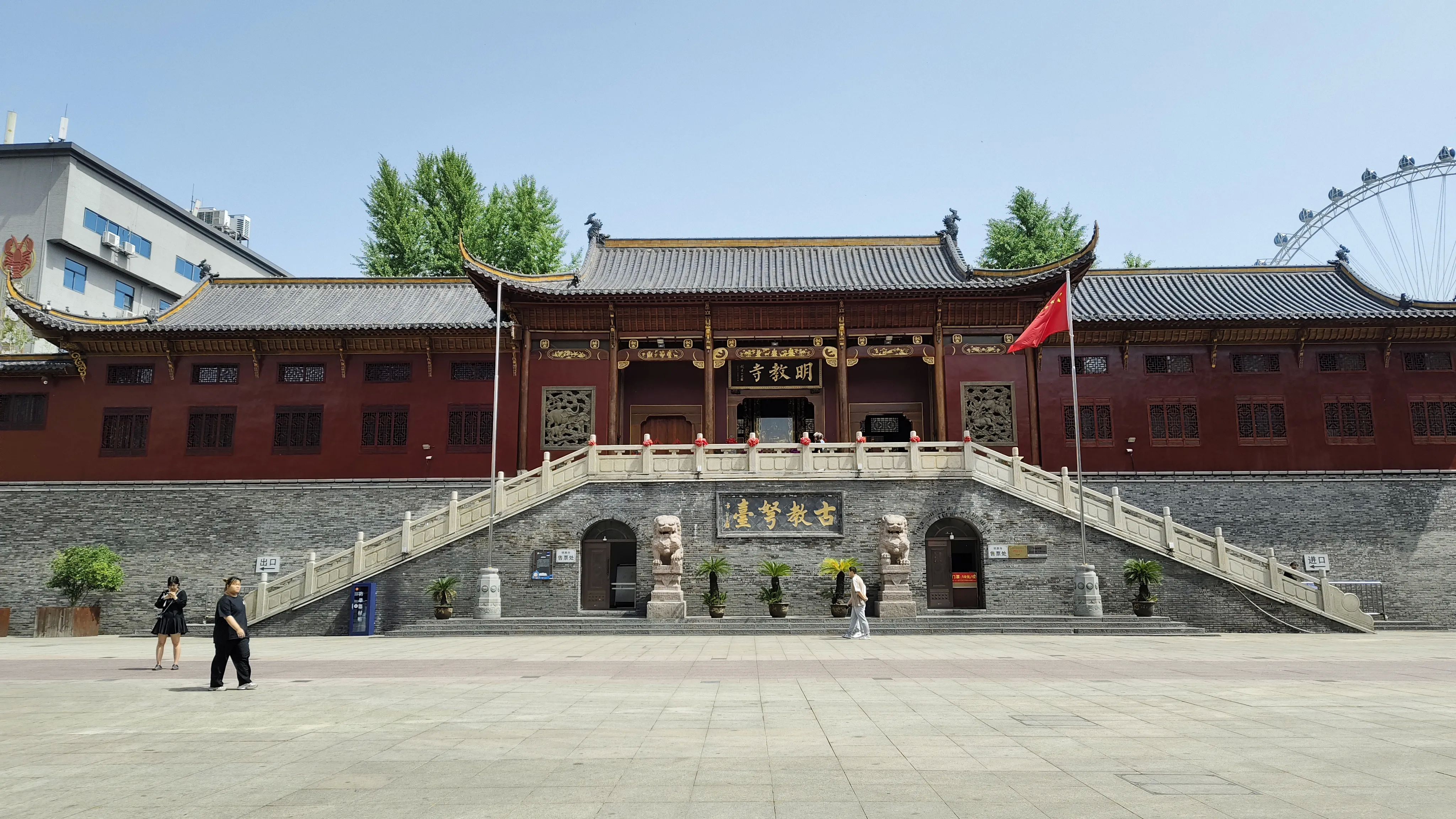 二、明教寺:原名铁佛寺,又称明教台、曹操点将台。位于淮河路东段,是江淮著名胜迹,合肥地标。它始建于南朝梁武帝年间,迄今有1700余年历史,它见证了南朝至民国时期中国江淮的佛教文化的发展变化。它由佛殿、藏经阁、西厢院三部分组成。
