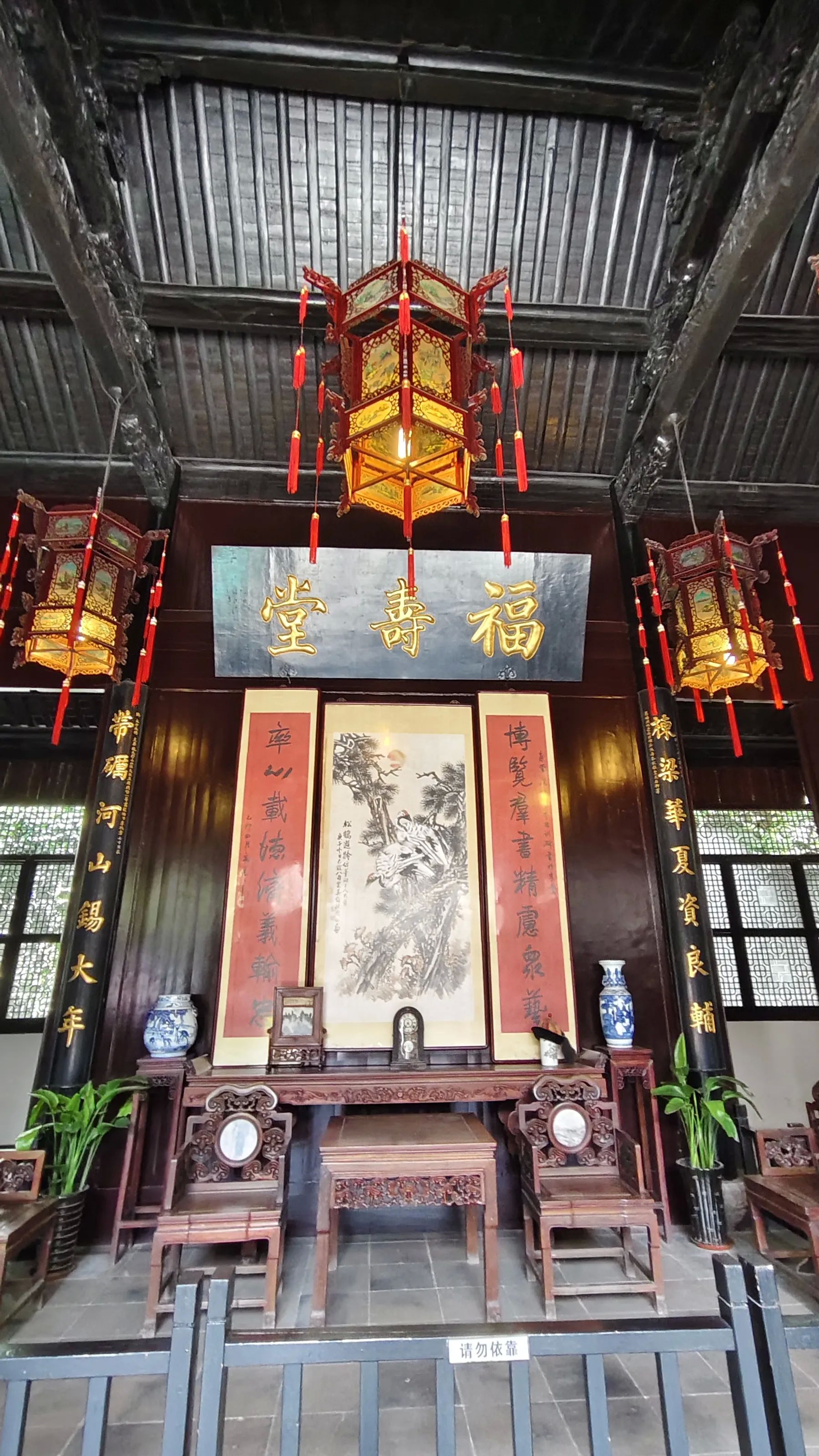 3、李鸿章故居的福寿堂又名中厅,是接见宾朋,举行家族重要仪式的场所。高达九米的规格和“明三暗五”的建筑形式,体现了江淮古宅风韵。堂中“佘太君祝寿图”等木雕构思考究,技法流畅,乃徽北派古建雕刻的上乘之作。