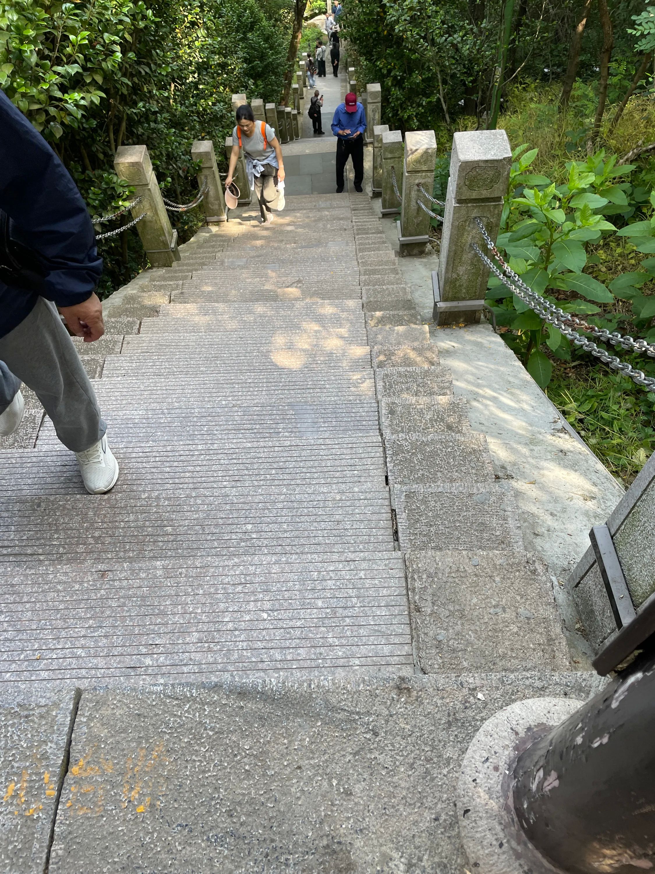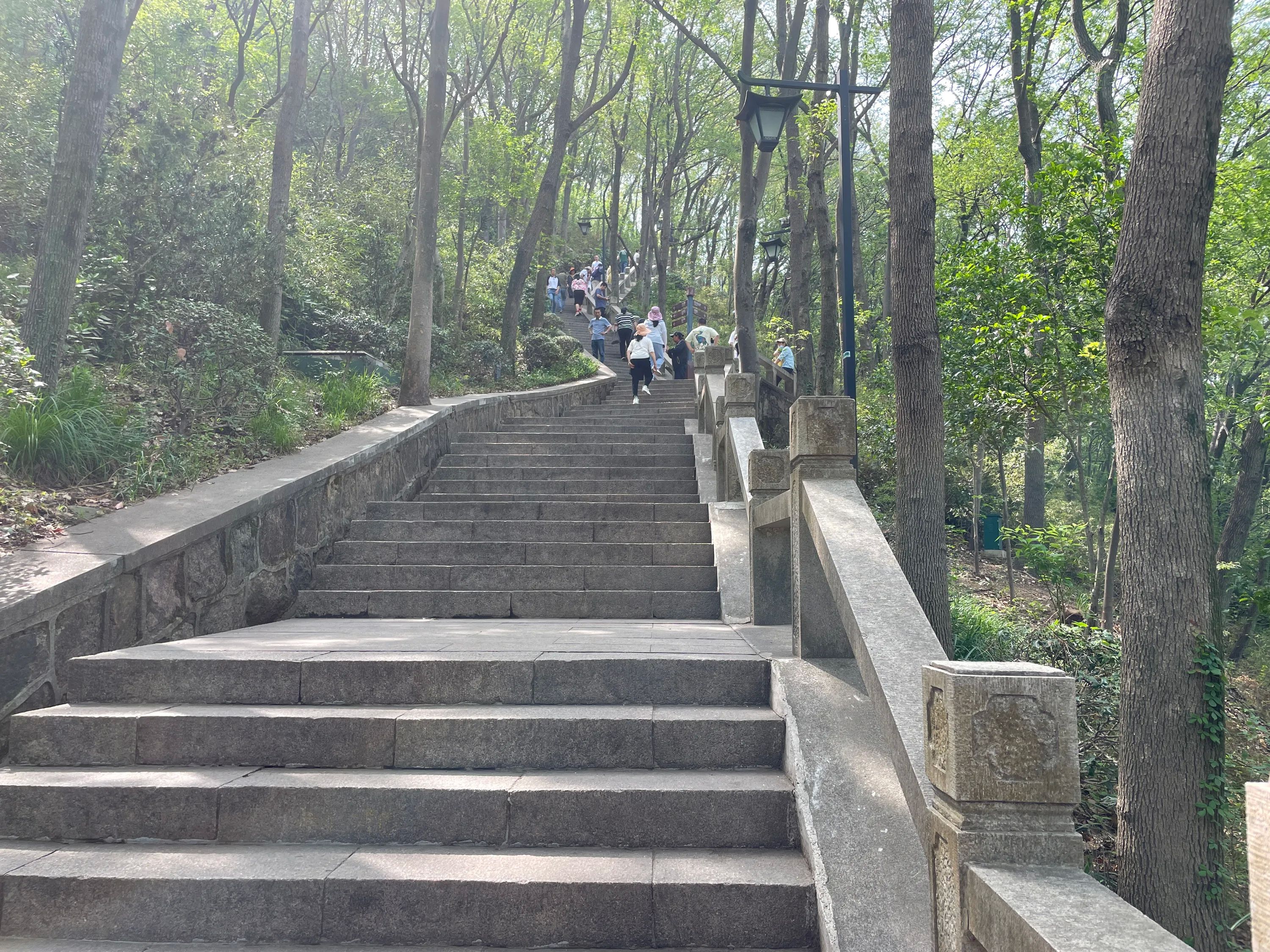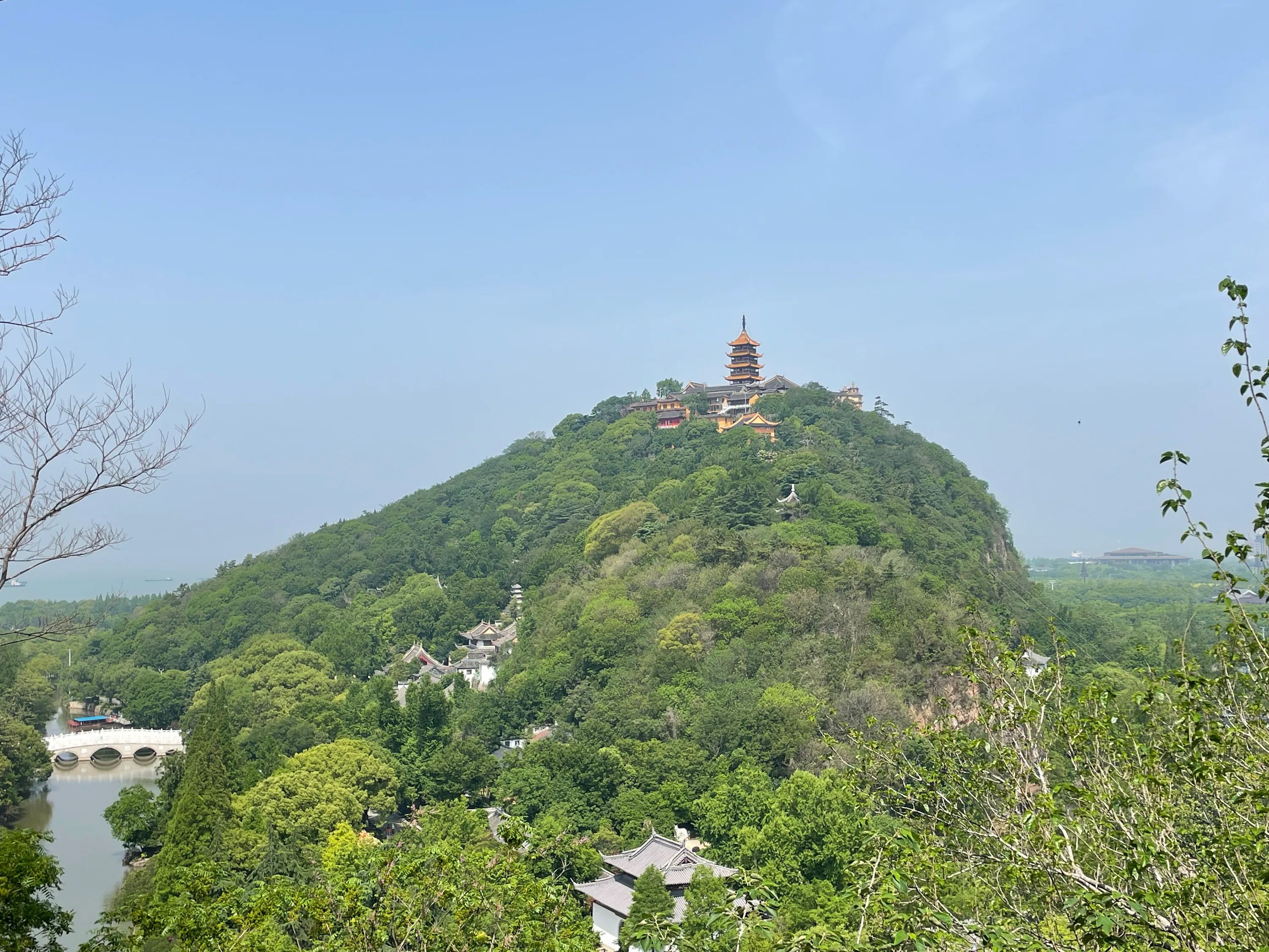 早上7点50从家出发,小毛驴骑行。第一站军山,从我家到军山9.5公里左右,骑行25分钟。今天的天气还是很给力,虽然报了最高温度31度,但是有点小风加上军山上植被充足,山上还是比较凉快。军山不高,正常25分钟到顶,山顶的普陀别院在修缮,往后面的军山气象台和下山的路被封起来了,下山的话只能原路返回或者往南下到阅江台那边绕了下山。