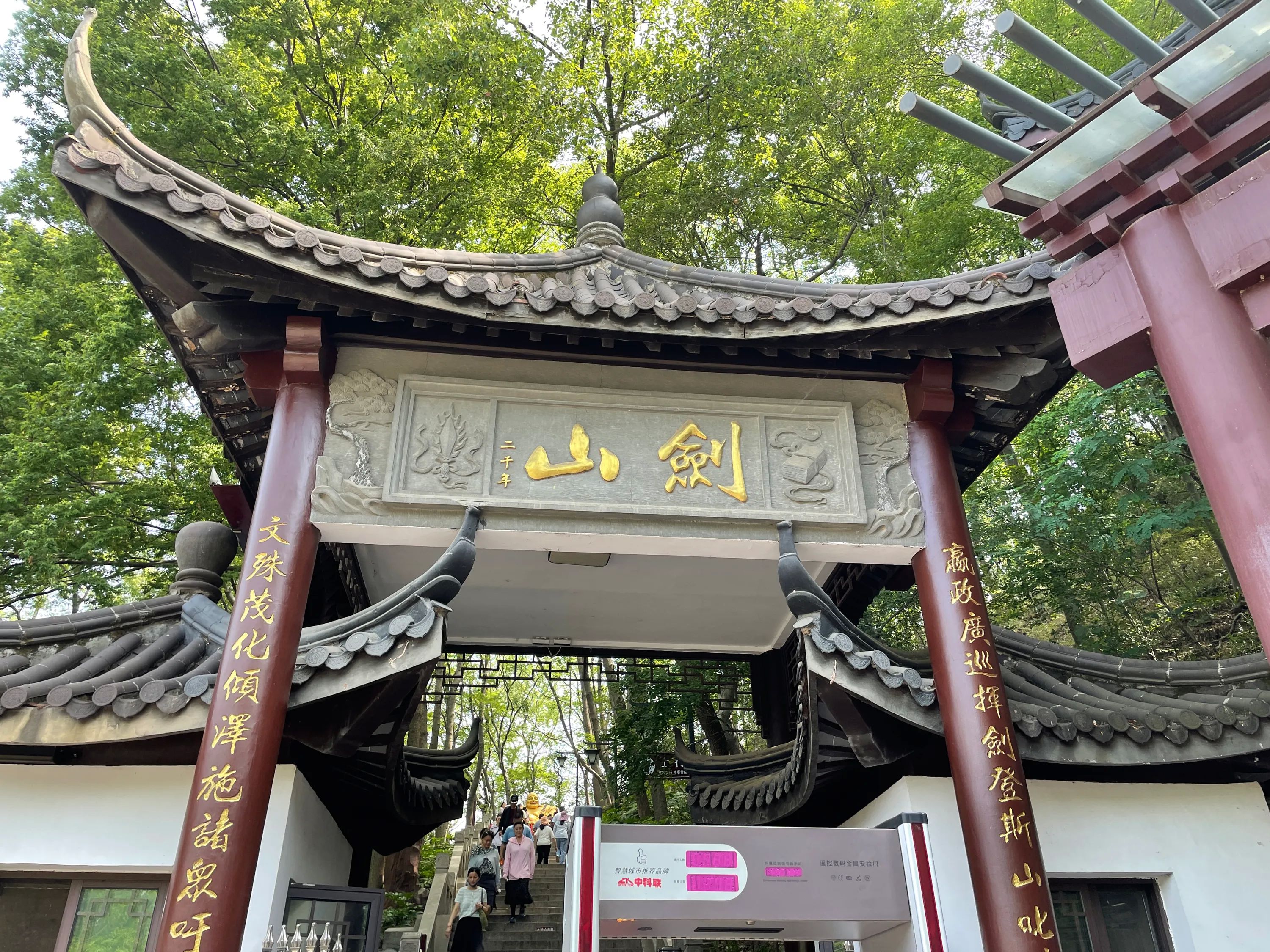 第二站剑山。剑山离军山很近,从军山北门出来,沿着山水路一直往西骑,有个岔口转到剑山路,骑行5分钟就能到。剑山山顶有个文殊院,供奉着文殊菩萨,所以每年的中高考季,很多的考生和家长都会前来祈福。去年我也是5月19号来的,当时文殊院在修缮,今年新增了好多状元元素,状元咖啡厅.状元亭.状元墙.独占鳌头。南通是教育之乡,也希望未来咱们南通出现越来越多的状元。
