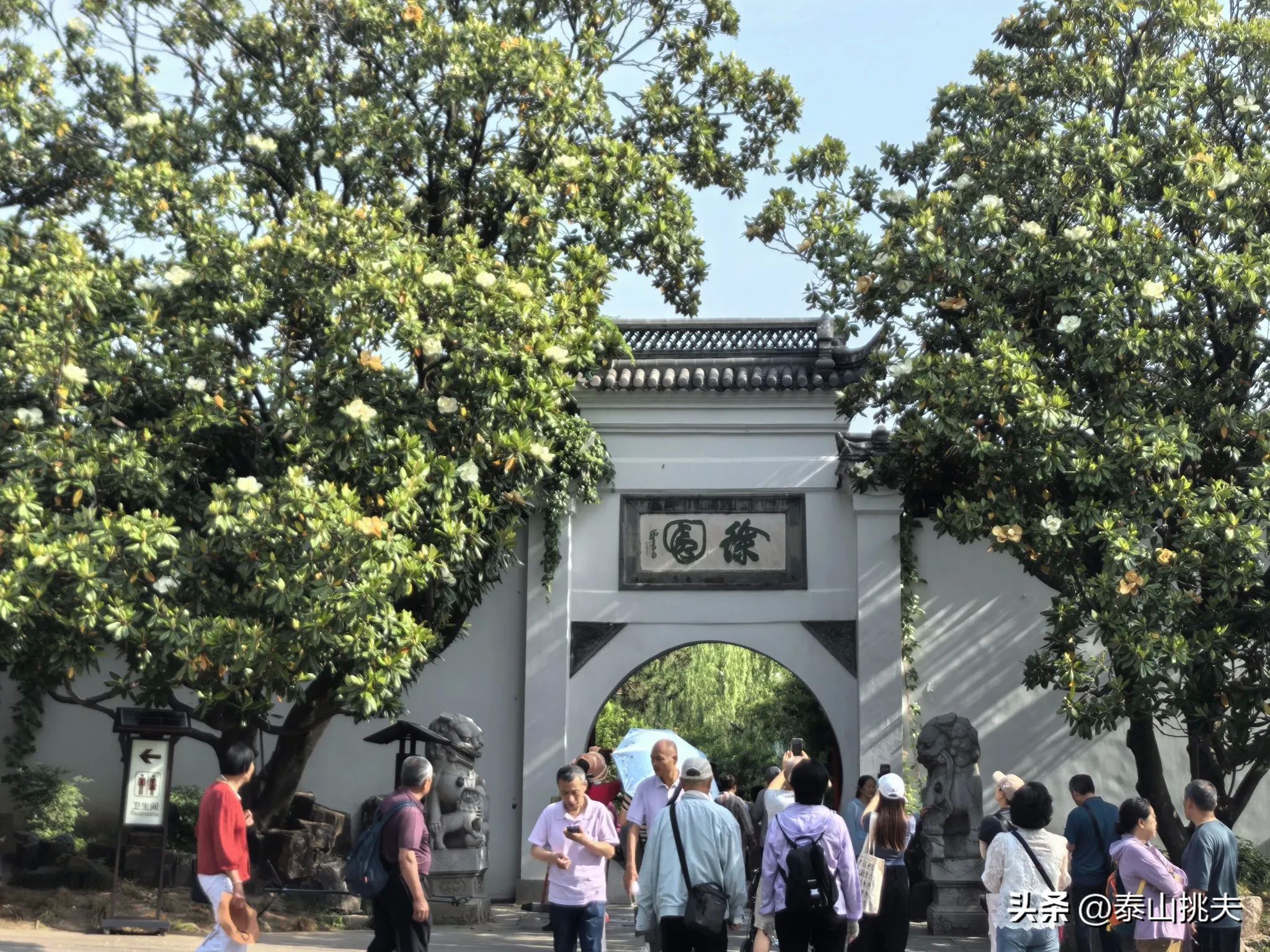 漫步柳堤不远处便到了徐园。这园子是为纪念参加辛亥革命后被袁世凯派人杀害的军长徐宝山而建的一座“园中园”,园内有荷池、馆轩、亭阁,尤其门额上题写的“徐园”二字,字体一楷一草,别有风味。