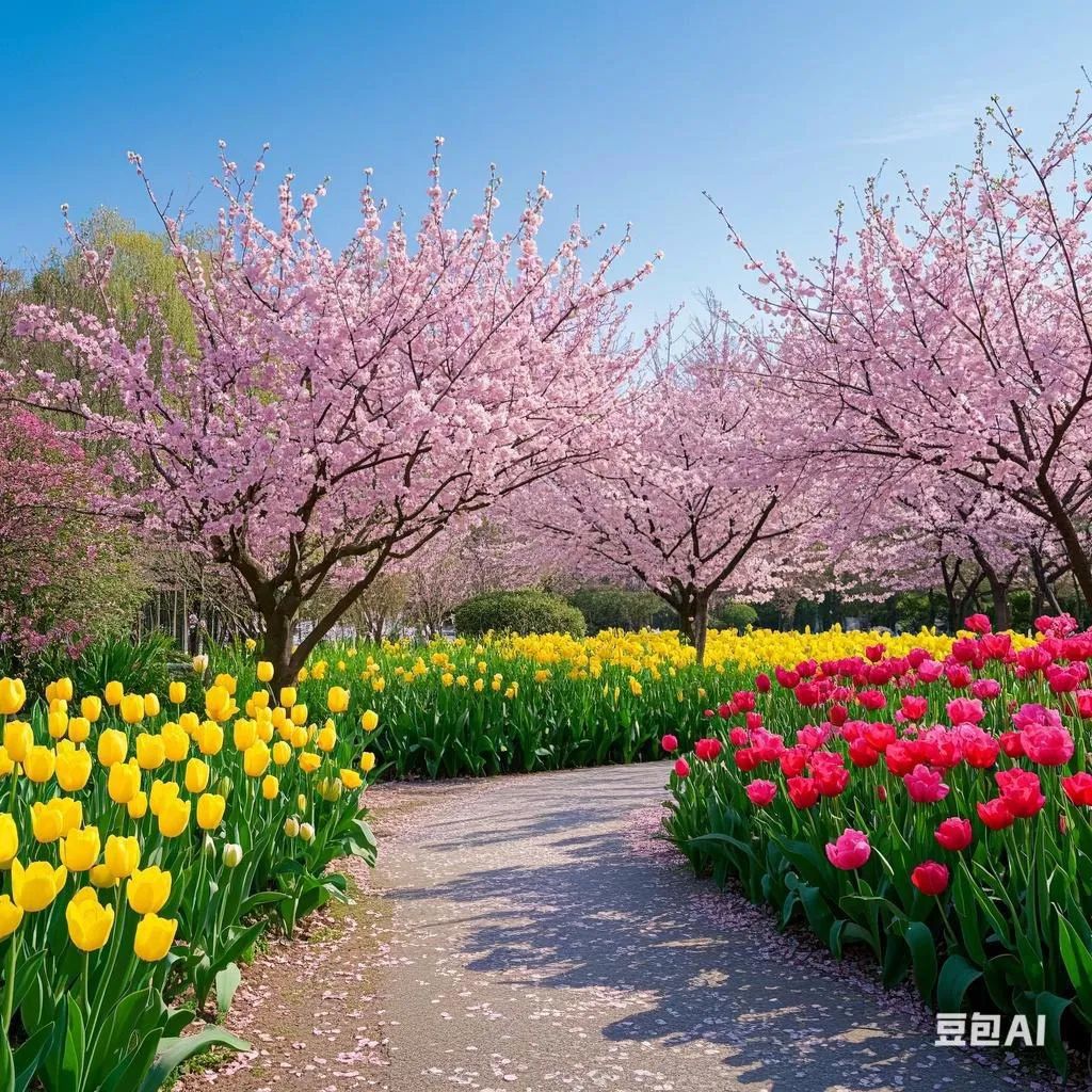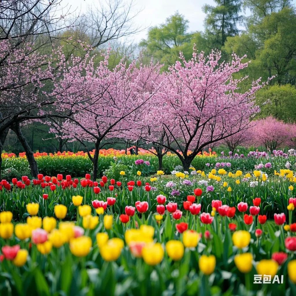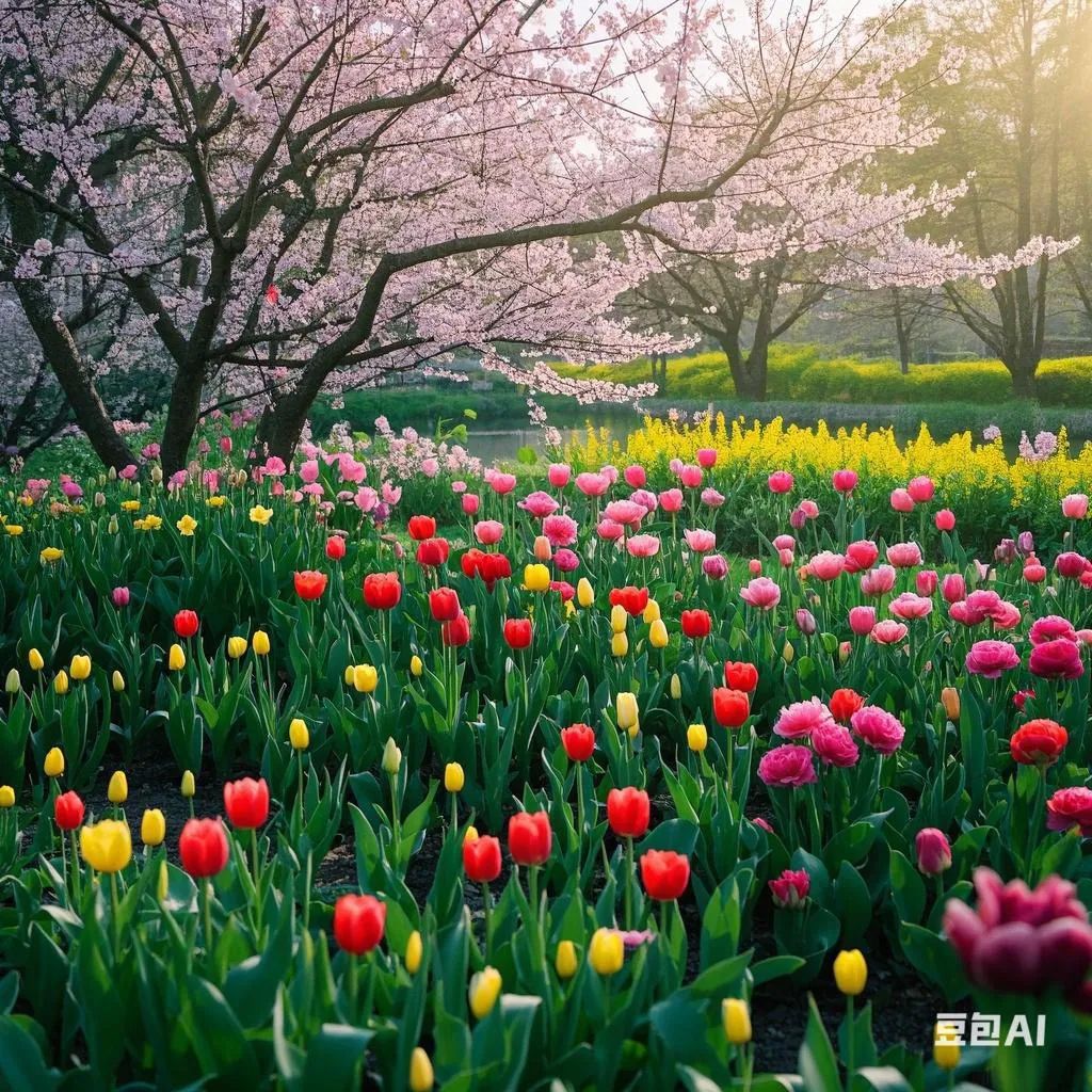- **特色**:郁金香色彩斑斓,成片的花海在春风中摇曳,宛如一幅油画。
