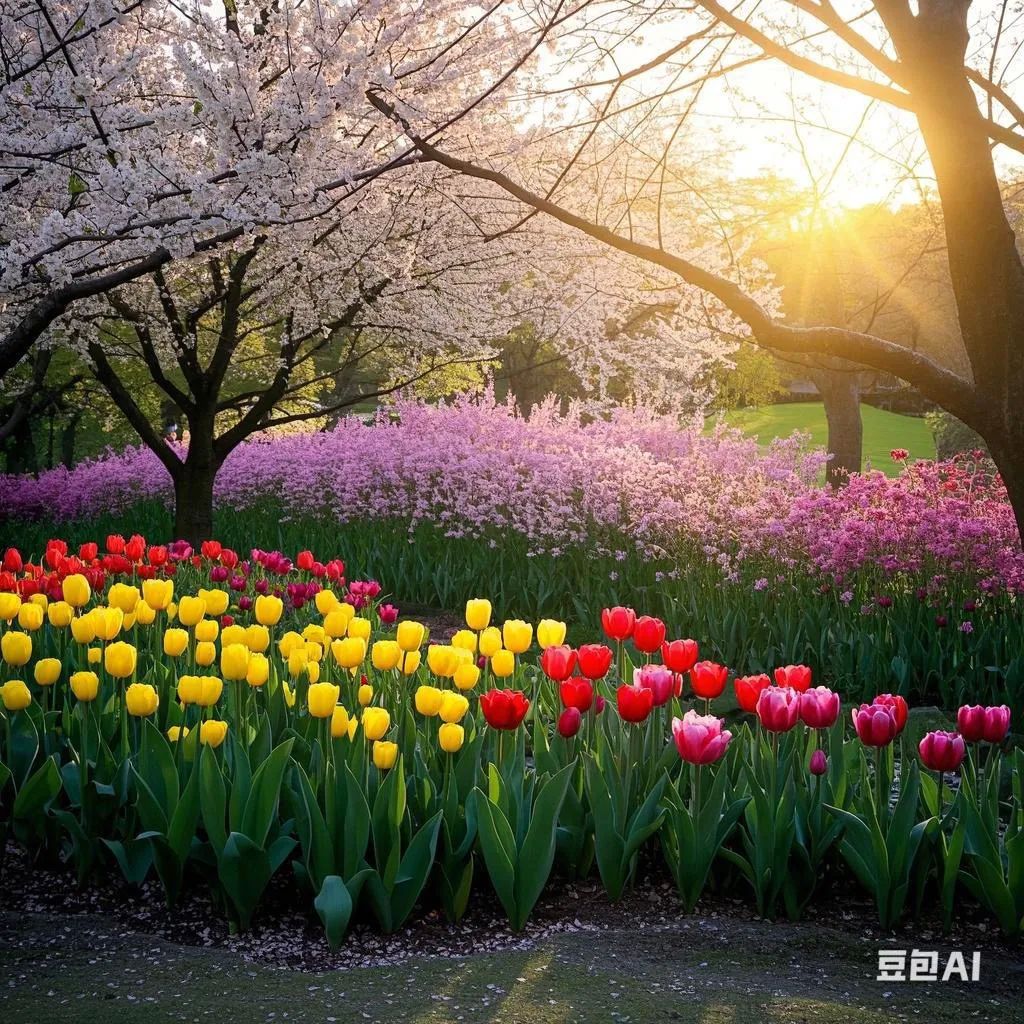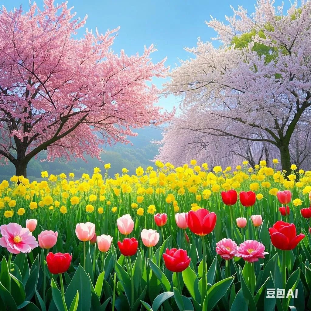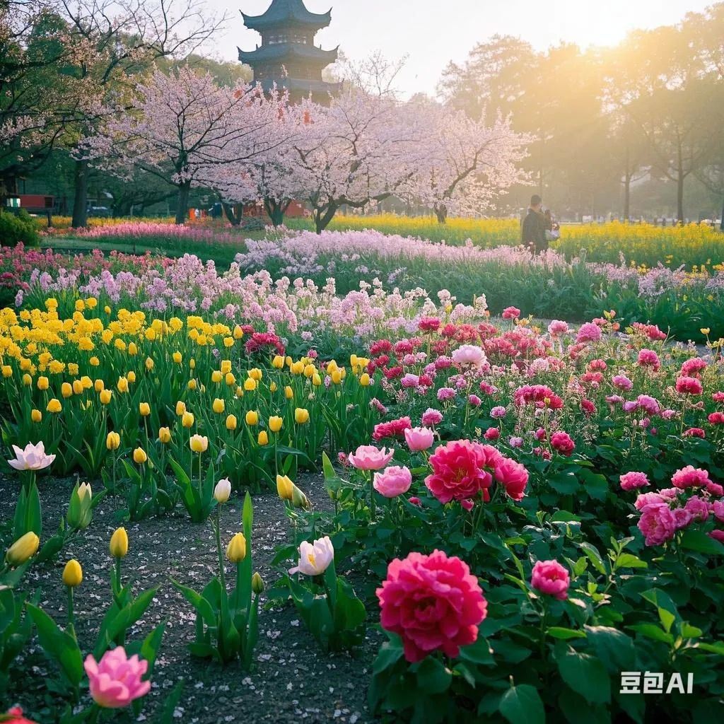 - **特色**:郁金香色彩斑斓,成片的花海在春风中摇曳,宛如一幅油画。