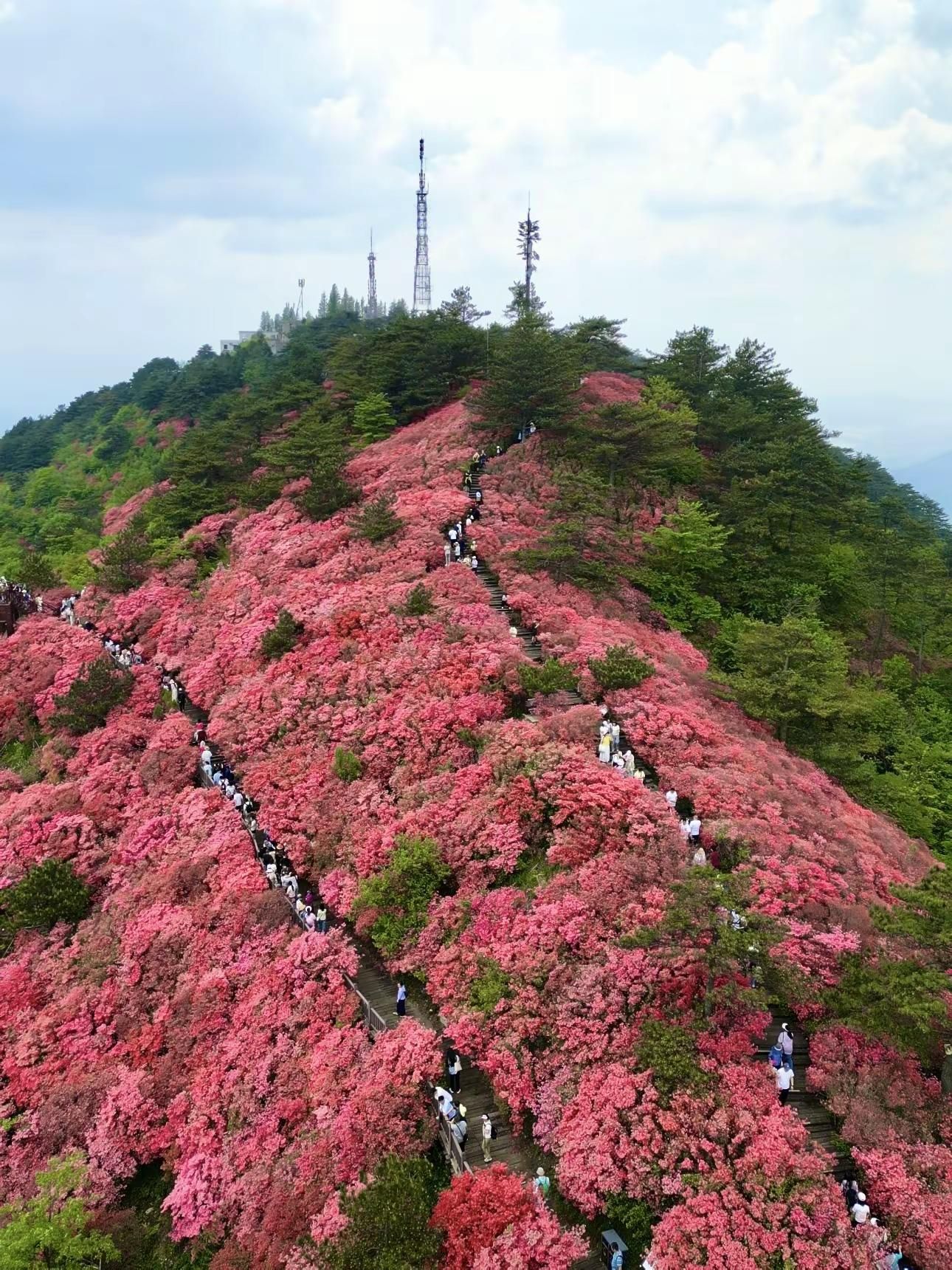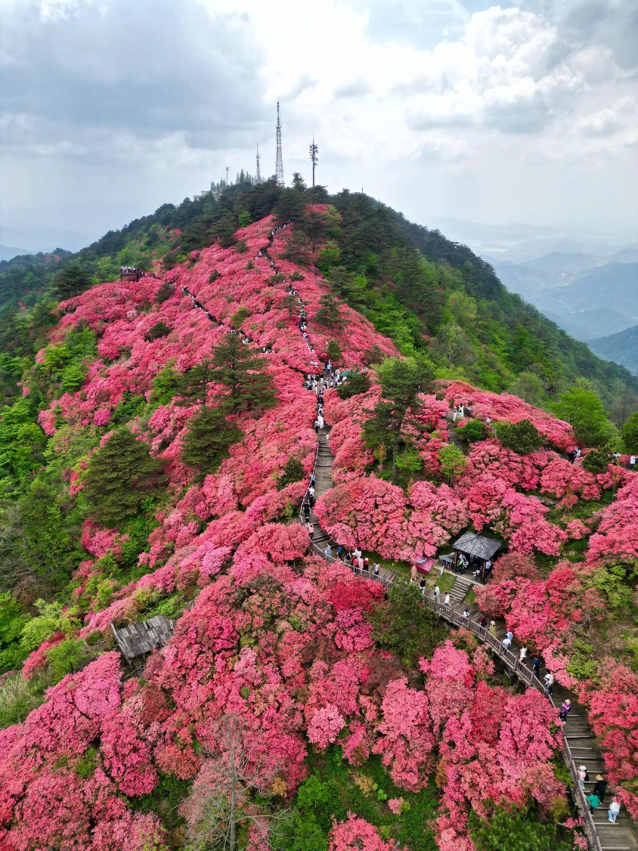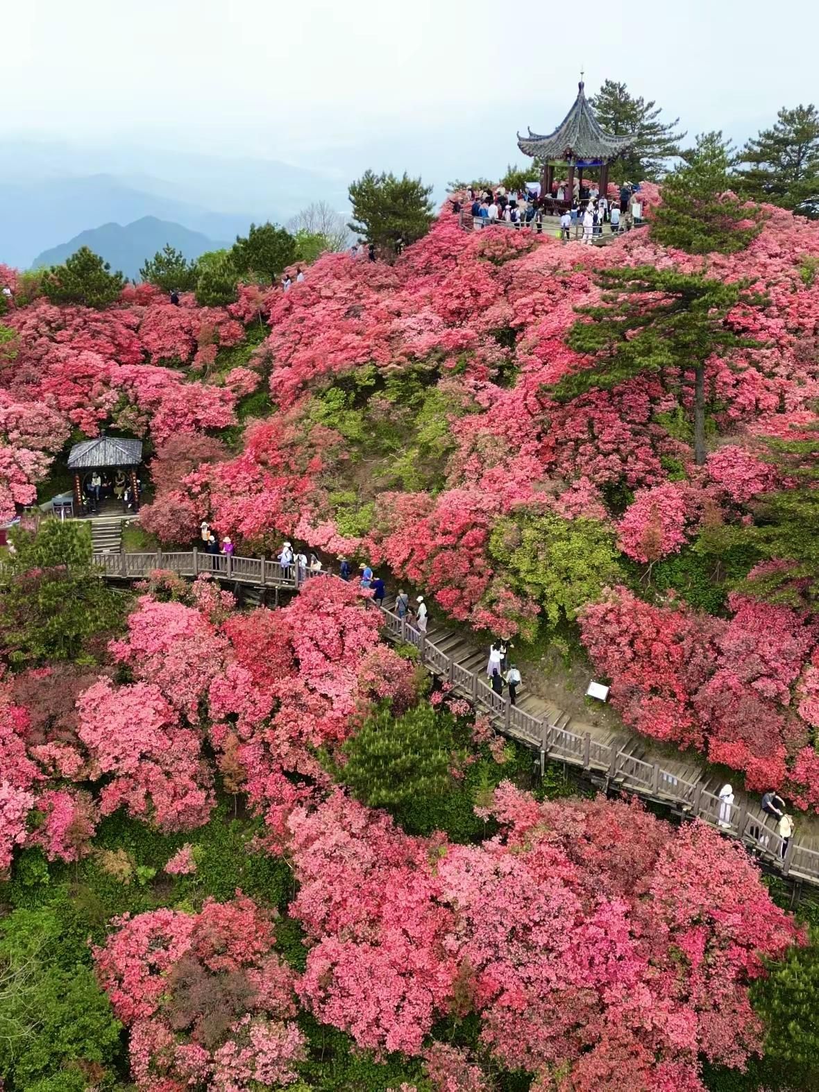 龟峰山游玩攻略|万亩杜鹃花海。坐标:湖北麻城龟峰山景区(国家 5A 级)交通:武汉自驾 2h / 高铁麻城北站转景区大巴门票:4 月 1 日 - 5 月 31 日 130 元(含景交车)必看亮点: 古杜鹃群落(10 万 + 亩) 玻璃栈道 + 天空之镜(高空刺激体验) 千年神龟地质奇观(龟首、龟背、龟尾) 红色文化展览馆(了解大别山革命历史)花期:盛花期:4 月 20 日 - 5 月 5 日(漫山红遍)尾花期:5 月 6 日 - 5 月 15 日(少量残花 + 人少景美)经典路线(北门进):第一站:拜寿台(看龟首最佳观景点,日出时段绝美)第二站:龟首(海拔 1260 米,登顶沾 “长寿” 福气)第三站:杜鹃花海(二环线 “杜鹃仙子亭” 拍照封神)第四站:龟塔 1288(木质螺旋通道 + 钢质滑管,登顶俯瞰全景)第五站:玻璃栈道(悬空 300 米,恐高者慎入!)第六站:天空之镜(360° 观景台,自带反光板效果)第七站:杜鹃博览园(近千种稀有杜鹃,雨天避雨好去处)美食: 麻城吊锅(腊肉 + 鱼面 + 豆泡炖煮,搭配老米酒超绝!) 龟山云雾茶(景区内茶园可体验采茶制茶) 地藕炒腊肉(本地特色野菜,脆嫩爽口)实用 Tips: 交通避坑:自驾车停北门停车场(3000 车位),换乘景交车(15 元 / 单程)麻城北站景区大巴:6:30 首班,末班车 18:00 装备建议:穿防滑运动鞋(登山步道湿滑)带冲锋衣(山顶温差大,5 月也可能起雾)充电宝 + 防晒帽(拍照耗电快,紫外线强) 错峰指南:工作日早 8 点前入园,避开 10 点后旅行团下午 4 点后去玻璃栈道,排队人少#满山遍野映山红 #花期已至美好如初 #快乐趣出发 #老袁说旅游 #不一样的感觉