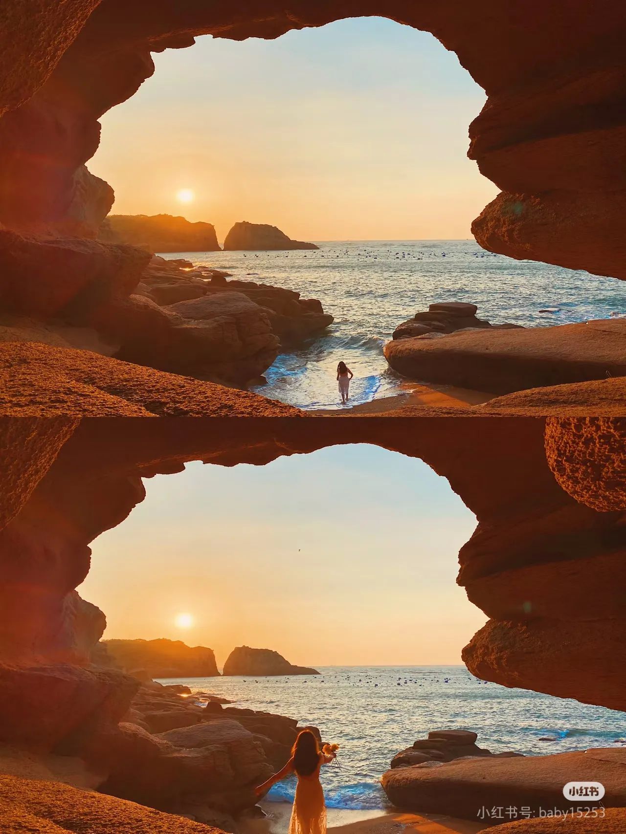 最佳的角度是那个网红洞洞,这里是看日出的绝佳角度,旁边的礁石也很有大片的感觉。节假日人很多,可以错峰前往,还有最关键的一点,一定要看清潮水再去,潮水不退的话,可就白跑一趟了。