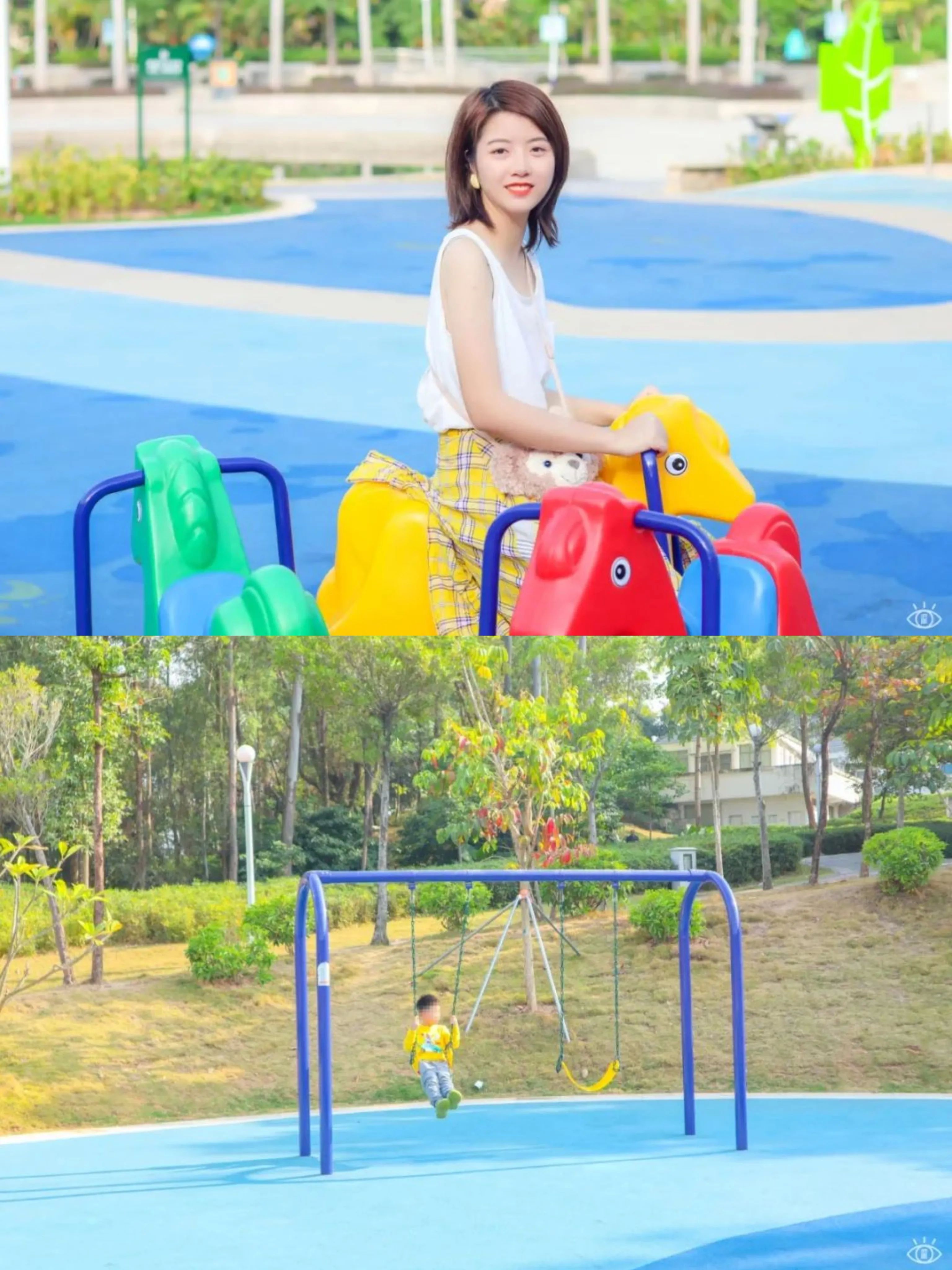 有秋千,滑梯,还有篮球场、网球场、足球场