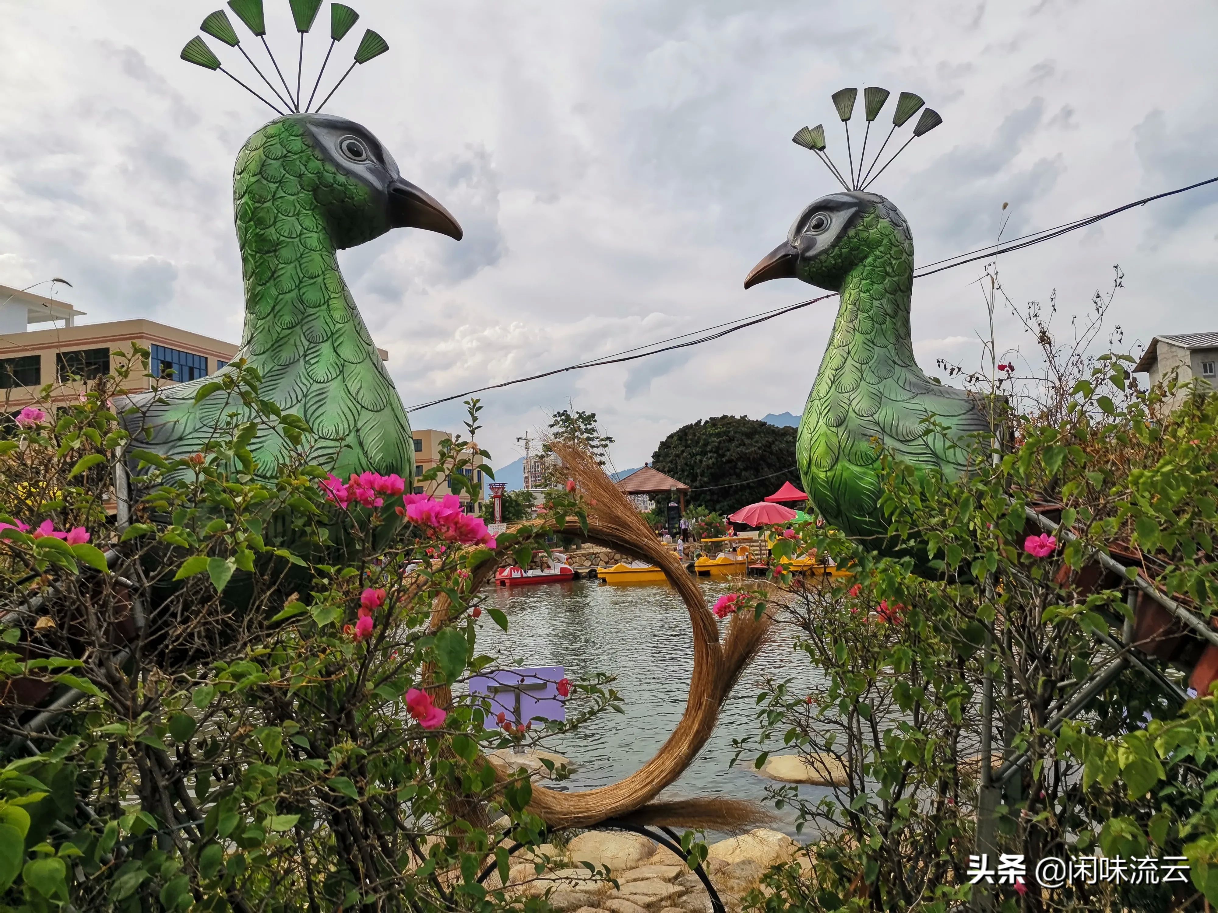 景区还有青年驿站提供食宿,但我去的时候还没有营业,驿站外面有很多非常流行的背景墙,超级适合拍照,随手就能拍出又红又酷的大片!景区湖边一对孔雀下的稻草圆圈也非常适合拍照,坐上去一拍就是满满的高级感~景区的湖里有超级多的金鱼,黑色,红色,黄色,还有锦鲤!想喂食的话,在路边买一包5块钱的饲料,抓上一小把撒到湖里,就有超级多的鱼会过来围食,场面壮观[偷笑]路上还有各种小吃,冰淇淋奶茶,还有个带着雷锋帽卖老冰棍的阿姨!喇叭循环着:冰棍老冰棍,小时候的味道,魔性洗脑不停回荡在耳边[泪奔]但老冰棍3元一支还蛮好吃的,纯正的绿豆冰棍,的确是小时候的味道,大家不妨试试,可以回忆下童年味道[呲牙]