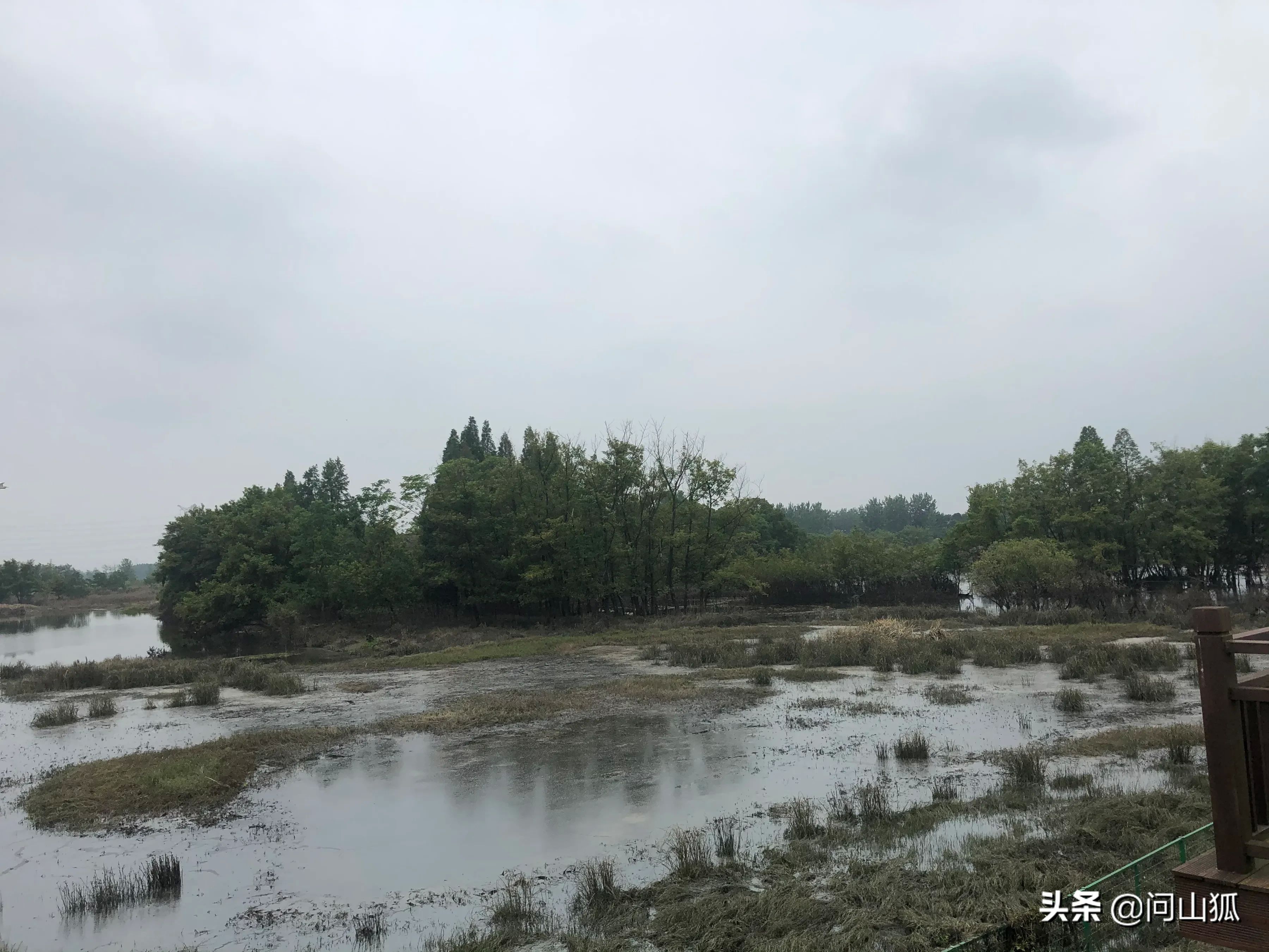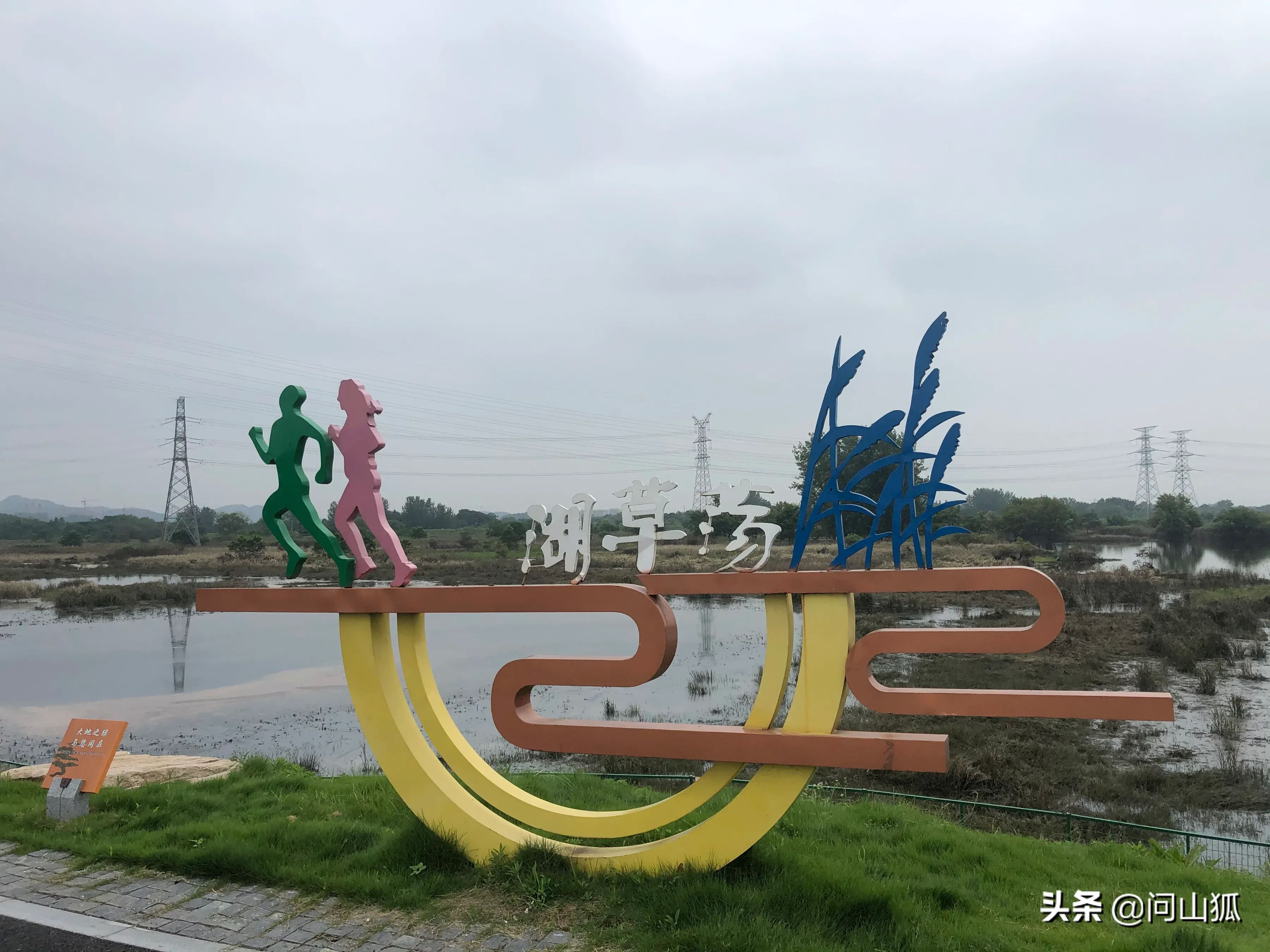 回到最开始那个大养殖塘右转,大约500米,一条很新的水泥堤坝路吸引着我开了进去,这就是北湖湿地的东部,路面上还有字“北湖.绿道”;有好几处观景平台,“北湖草荡”的牌子也出现了。