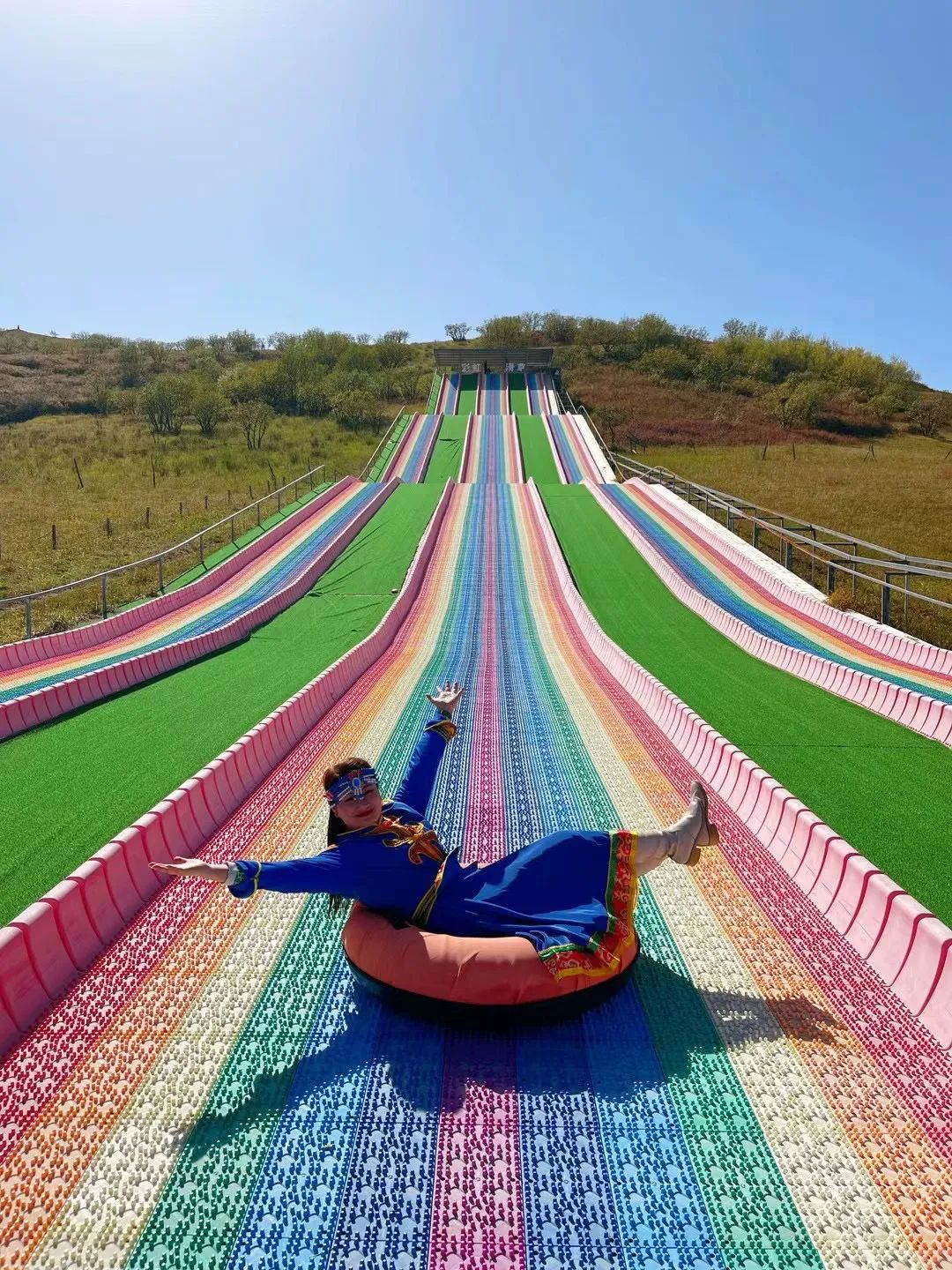 在滑沙场高山滑草场射箭场等等开启草原沙漠的另类玩法,滑沙滑草都让人大声尖叫着下来,但是又颠颠地上去玩。草原里的射箭场更有射箭的感觉,体验一把蒙古人的豪迈。辽阔的牧场里各个区块分布着不同的动物们,漂亮的牛羊、羊驼、牦牛、鸵鸟等等,在风吹草低的大草原上,渐黄的秋天风景里,犹如一幅幅画卷般吸引着大家的目光。七彩山、霍比特人村、沙漠绿洲、草原儿童游乐场、马站城堡车站、童话牧场、牛奶小站、蒙古部落等等,好玩又有趣的网红打卡地。