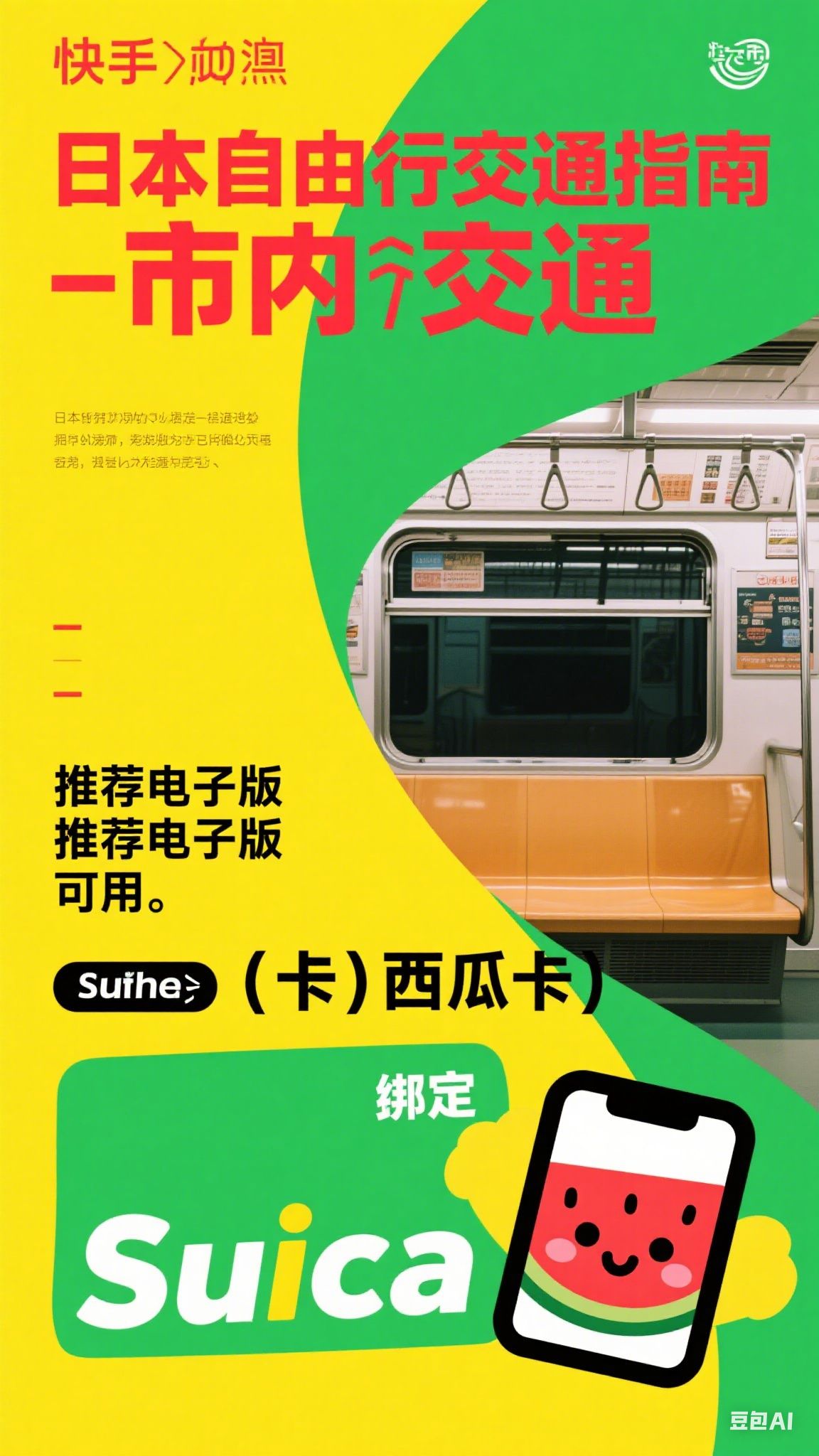 Suica(西瓜卡):推荐电子版(手机绑定),支持地铁、公交、便利店支付。