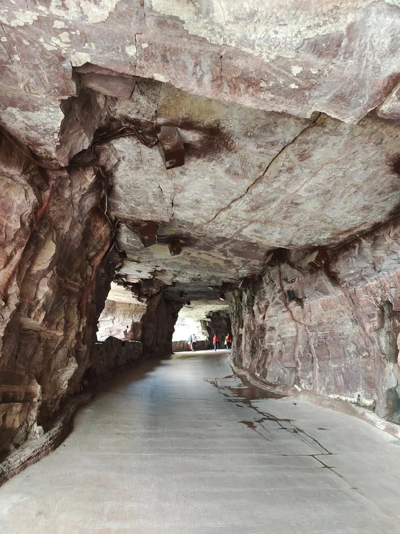 红岩绝壁上的挂壁栈道,惊险与美景并存