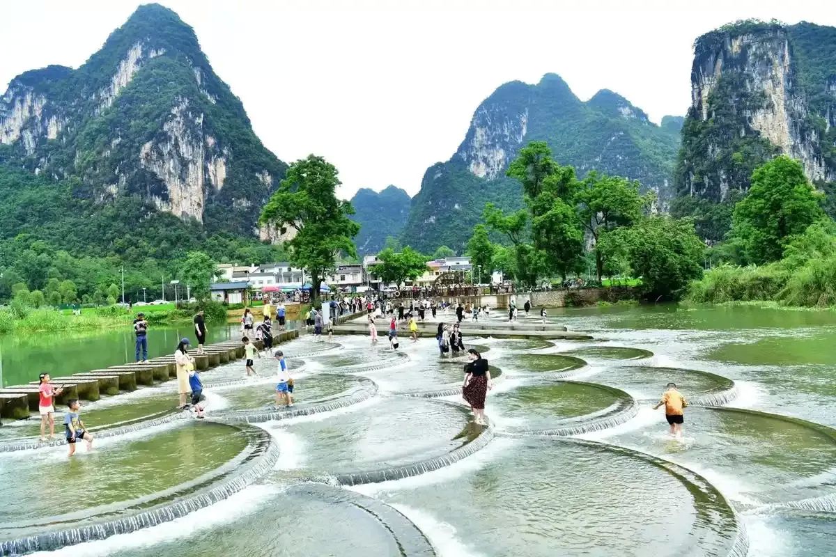 桂林漓江的山水画卷、阳朔西街的田园风情,始终是广西旅游的金字招牌。三月三期间,游客可泛舟漓江,或探访龙胜梯田,感受壮族农耕文化的千年传承。崇左的明仕田园以喀斯特峰林为背景,推出竹筏漂流与土司文化体验,而靖西的通灵大峡谷和鹅泉,则以瀑布、溶洞与清泉诠释了“秘境边陲”的幽静之美。