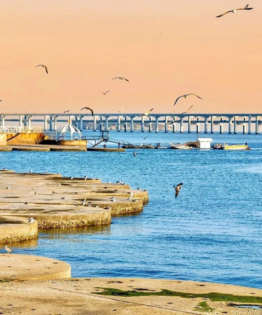 3. 鲅鱼圈海滨:北方小三亚!金沙滩细软得像面粉,光脚踩超治愈。必玩海上摩托艇,傍晚在观景台看落日坠入渤海,美到窒息!9月来还能赶上鲅鱼节,现捞海鲜便宜到哭。