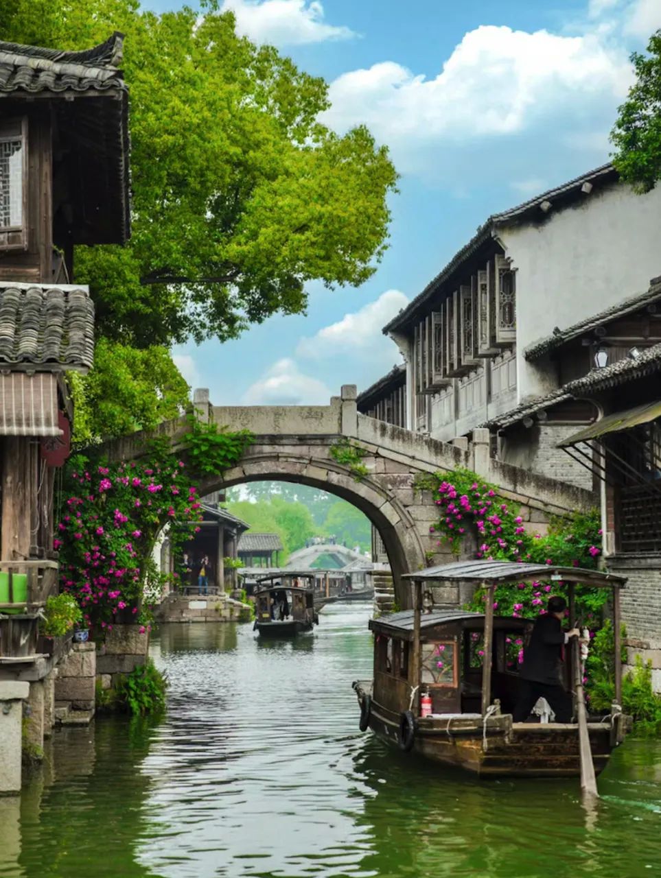 典型的江南水乡古镇,完整地保存着原有晚清和民国时期水乡古镇的风貌和格局。东栅的传统民俗展示,如蓝印花布印染,能让你领略江南传统技艺;西栅的夜景如梦如幻,坐着摇橹船,穿梭在河道上,两岸灯火映照在水面,美轮美奂。