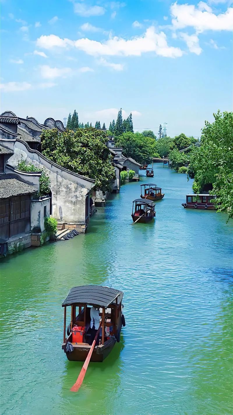 乌镇河道纵横,水网密布,大面积的水体在夏季能有效调节气温,带来丝丝凉意。古镇内古木参天,绿树成荫,为人们遮挡阳光,营造出清爽的环境。