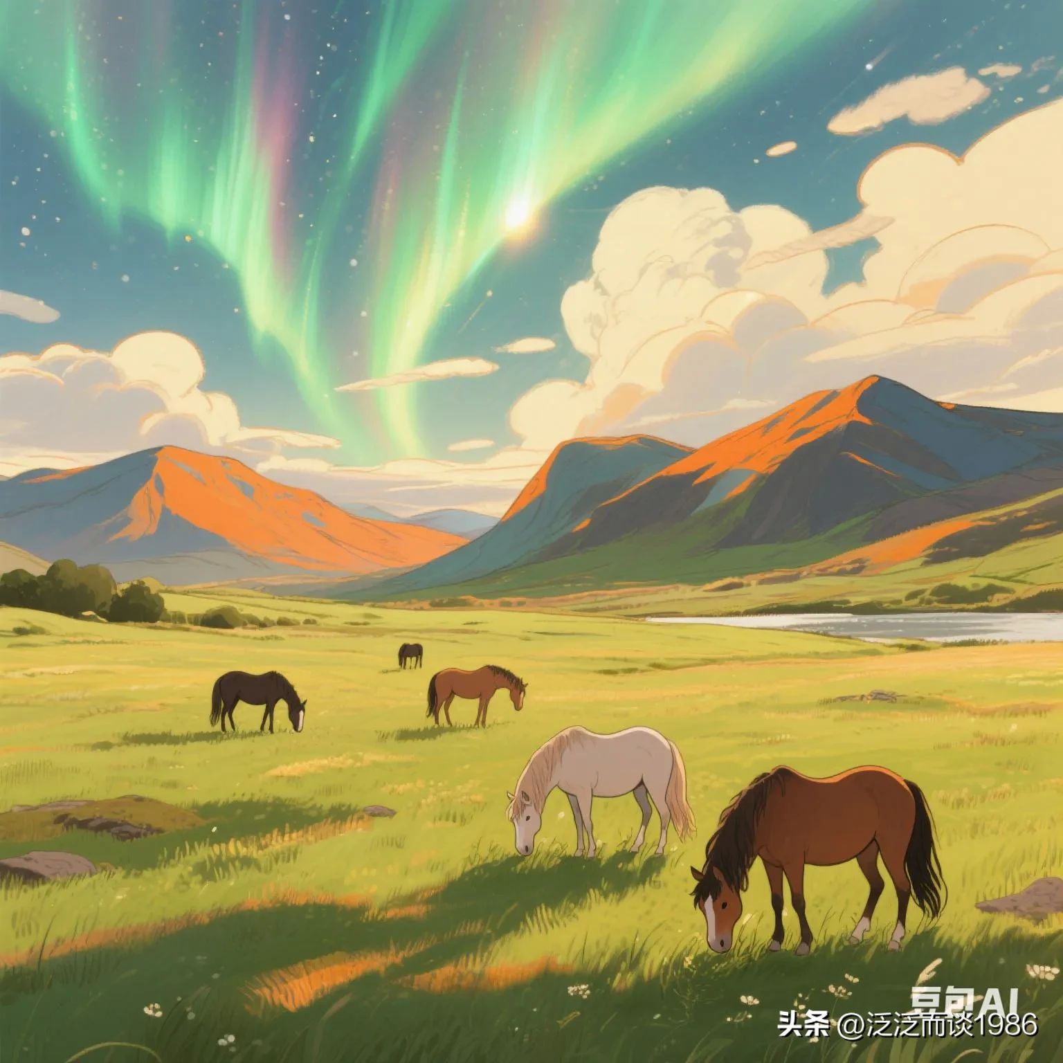 - 山顶万亩草甸与天湖相映,恍若宫崎骏的“风之谷”