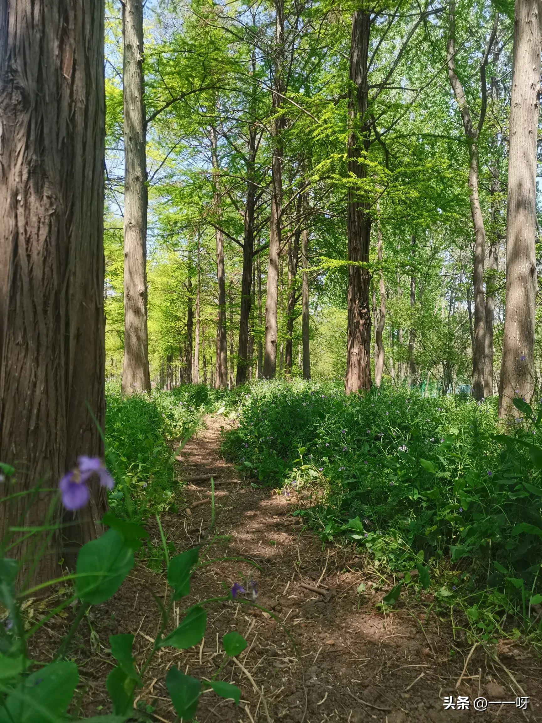 平山森林公园位于六合,园区较大,是一天然森林氧吧。刚进大门,右边是一片杉树林,林下成片的诸葛菜(相传诸葛曾用它补充军粮而得名)。一定要从花丛走一走(已经有弯弯曲曲的几条小道),看蜂忙蝶舞,听山涛虫鸣。