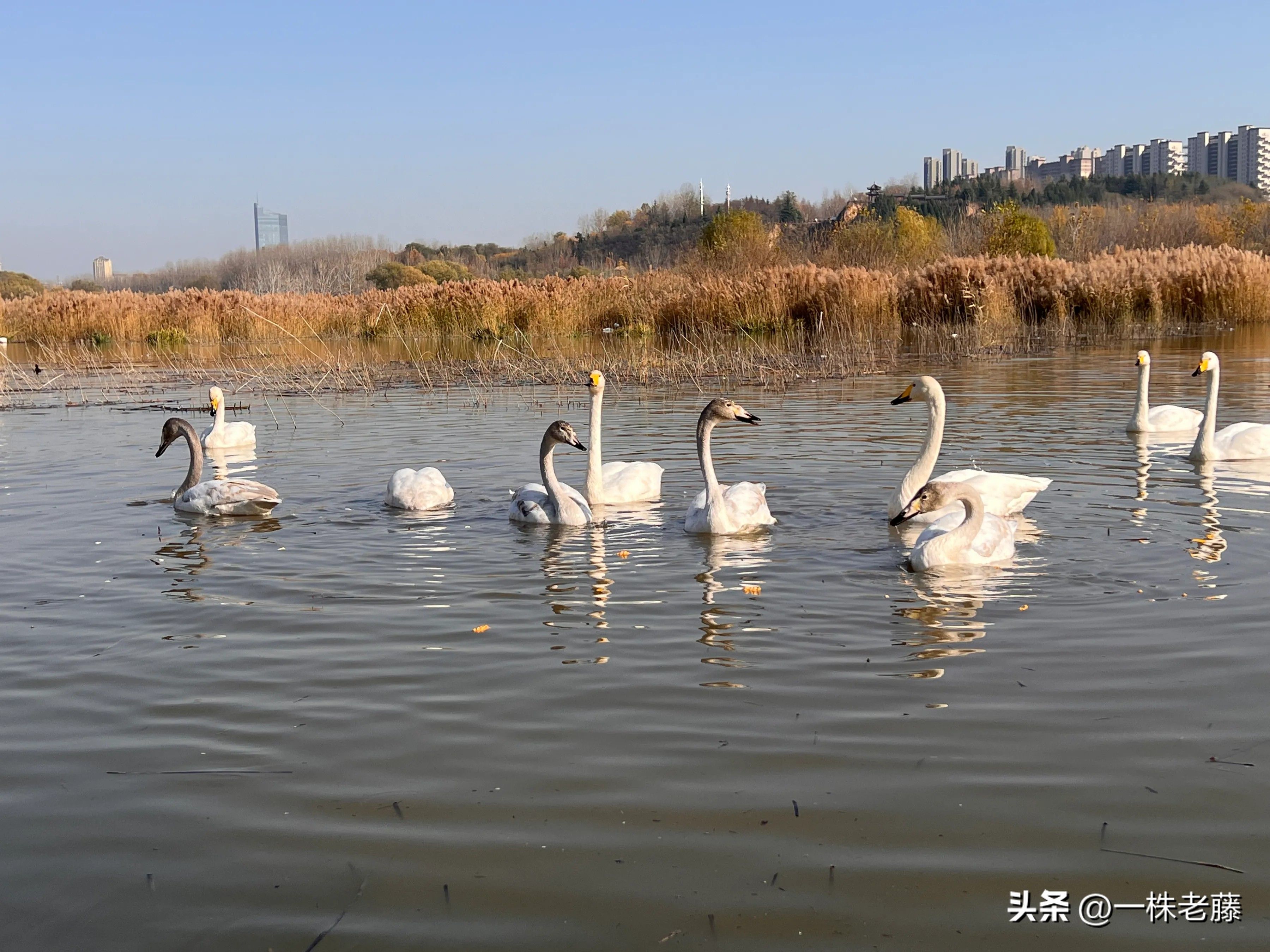 继续往里走,天鹅更多了,水面上、天空中、芦苇丛,树林里,天鹅无处不在。波光粼粼的湖面上,突然出现几只白天鹅一起飞向天空,在湖面上盘旋,太惊艳,画面太美,只可惜手机拍出来[捂脸]