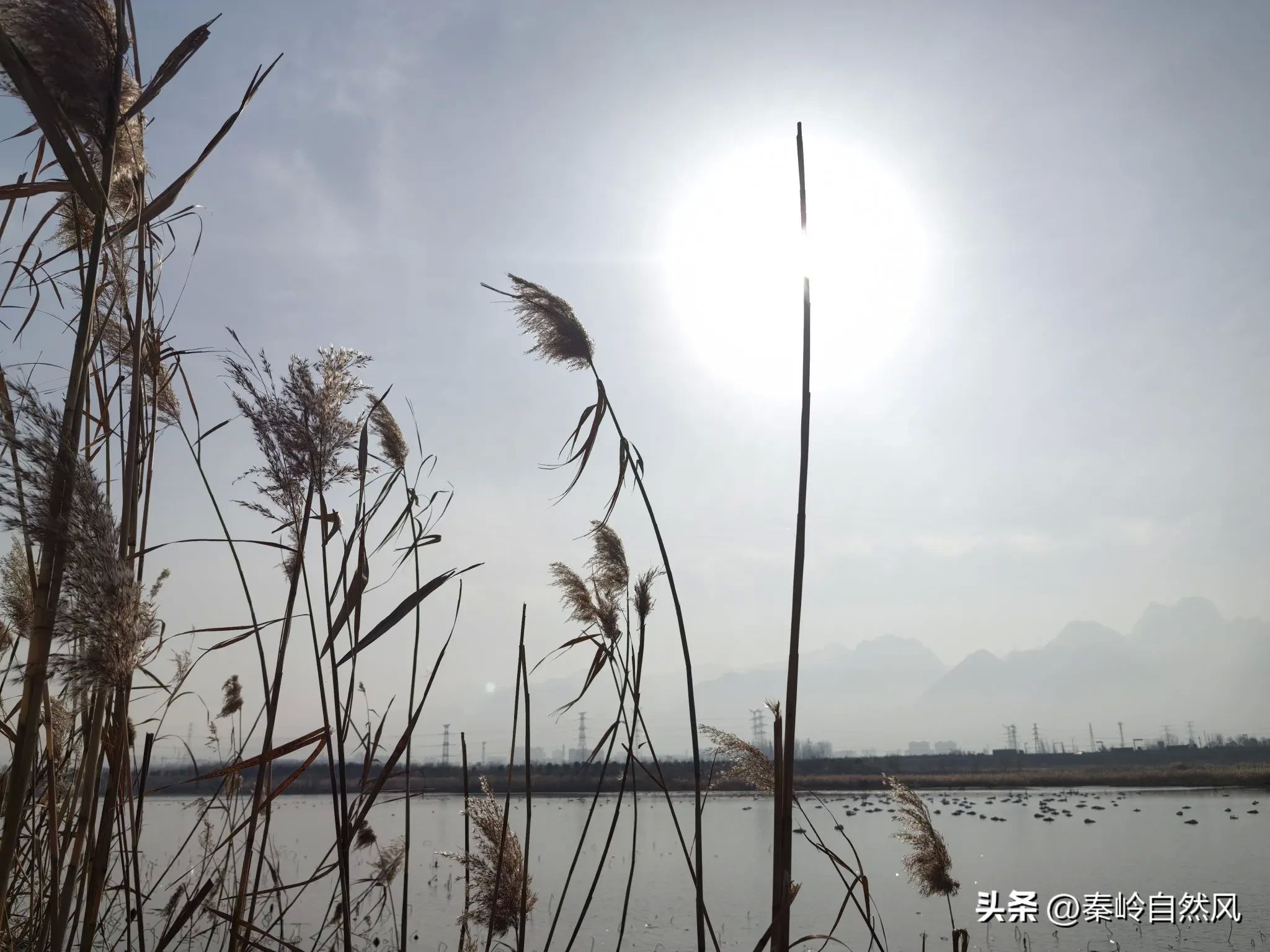 在湖中,有的天鹅引吭高歌鸟语啁啾欢快宣告对此片湿地的领土主权;有的可能因舟车劳顿疲惫不堪在埋头小憩修养身心;还有的年轻体力好的,不时组队翩翩起飞在空中盘旋,视察、警戒,担任大家族的空中护卫。蒹葭苍苍,波光粼粼,倩影翩翩,一幅和谐而又生机勃勃的天地壮美图,在雄伟的华山脚下徐徐展开。