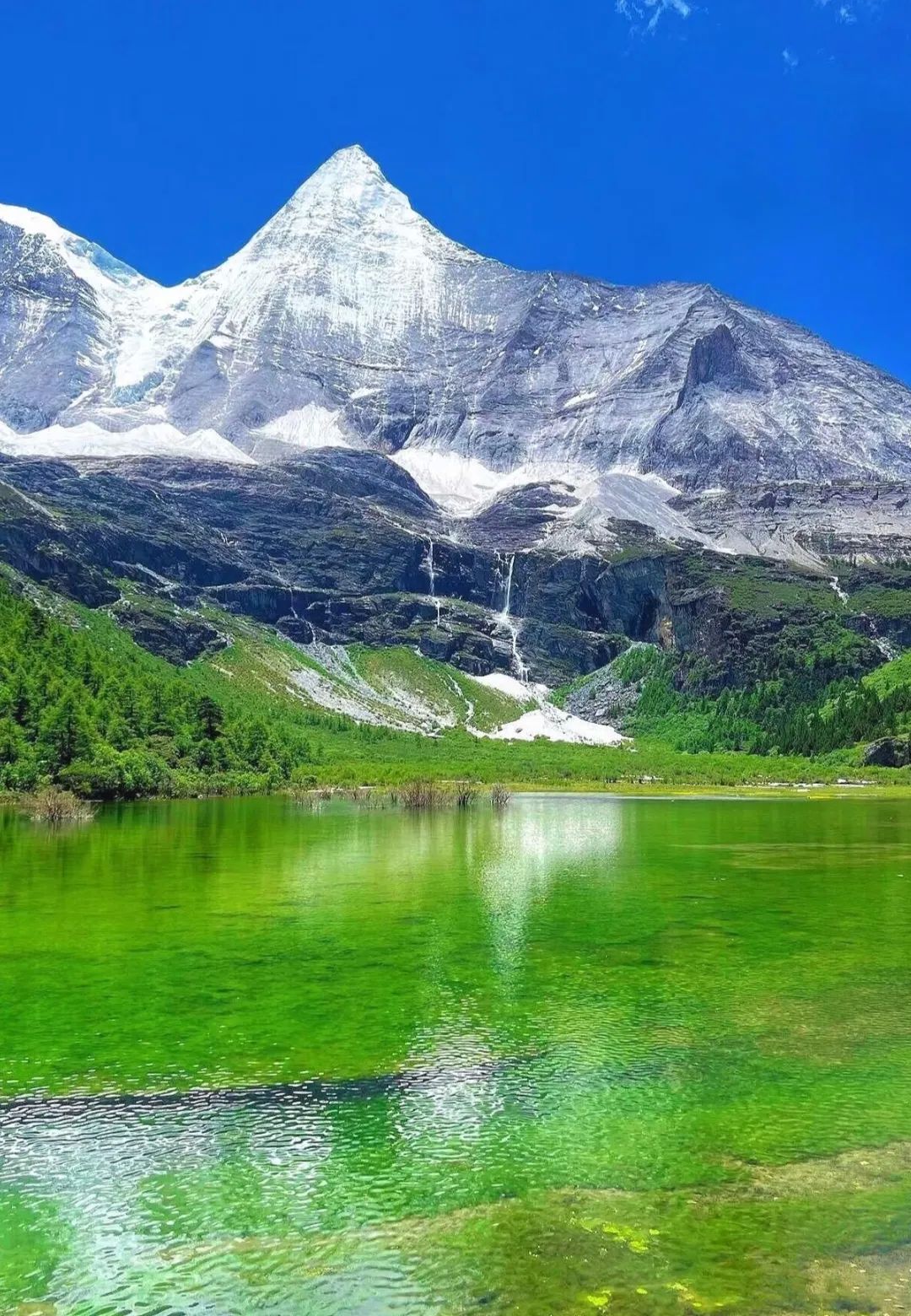 - **冲古草甸:三神山倒影。