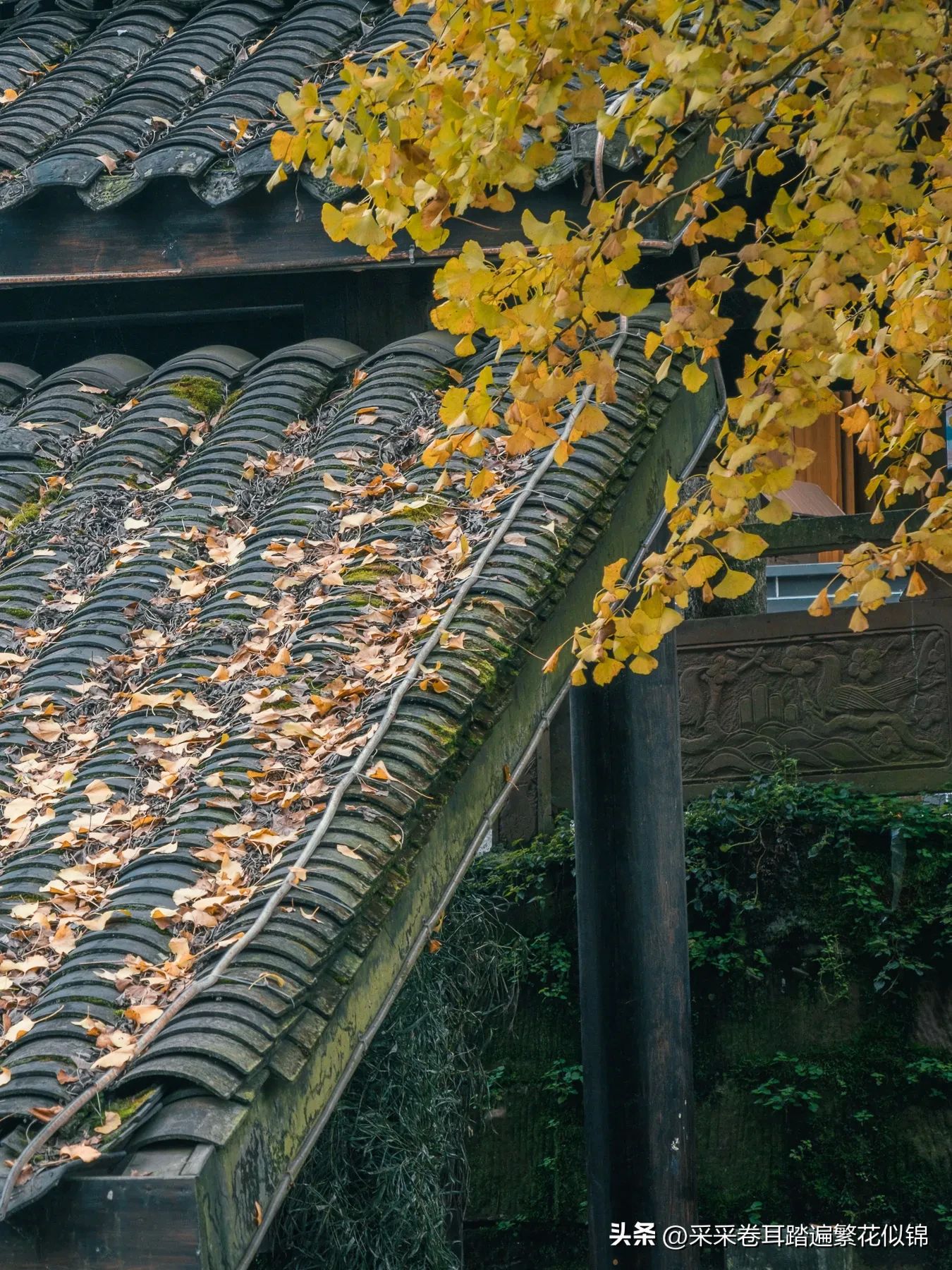 上里古镇种植了很多银杏树,每到秋冬交替季节,银杏叶黄,树伫在小楼旁,楼就是一道风景;叶掉在屋檐上,檐就是一处风光。