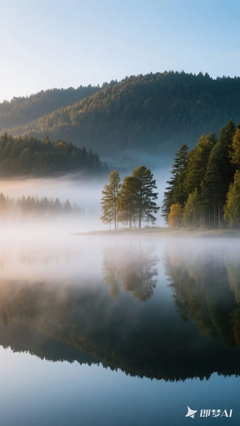 公主湖(摄影天堂):清晨薄雾笼罩湖面,金莲花盛开时宛如油画